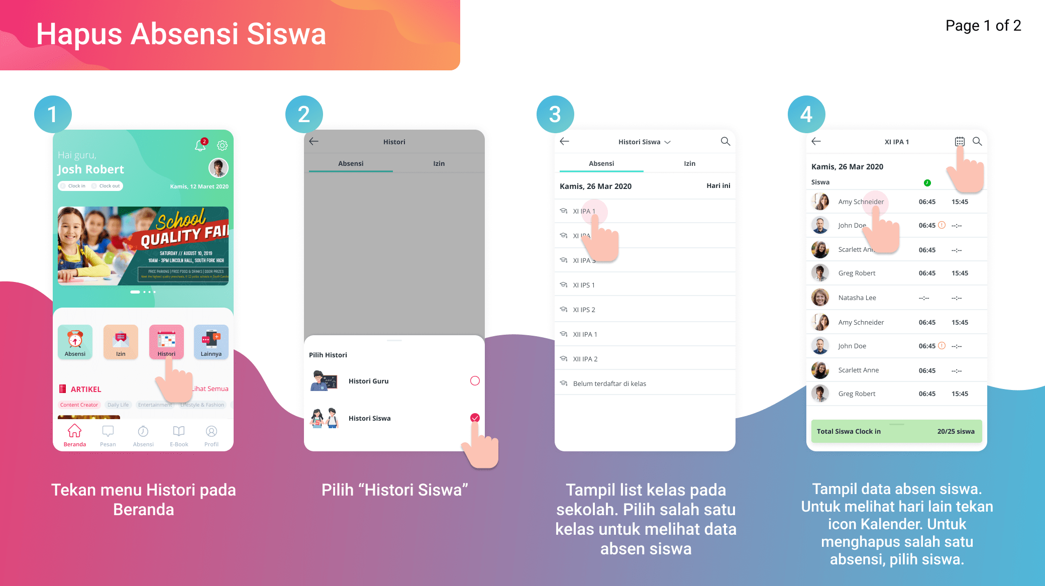 Berikut merupakan tahapan untuk hapus absensi siswa.