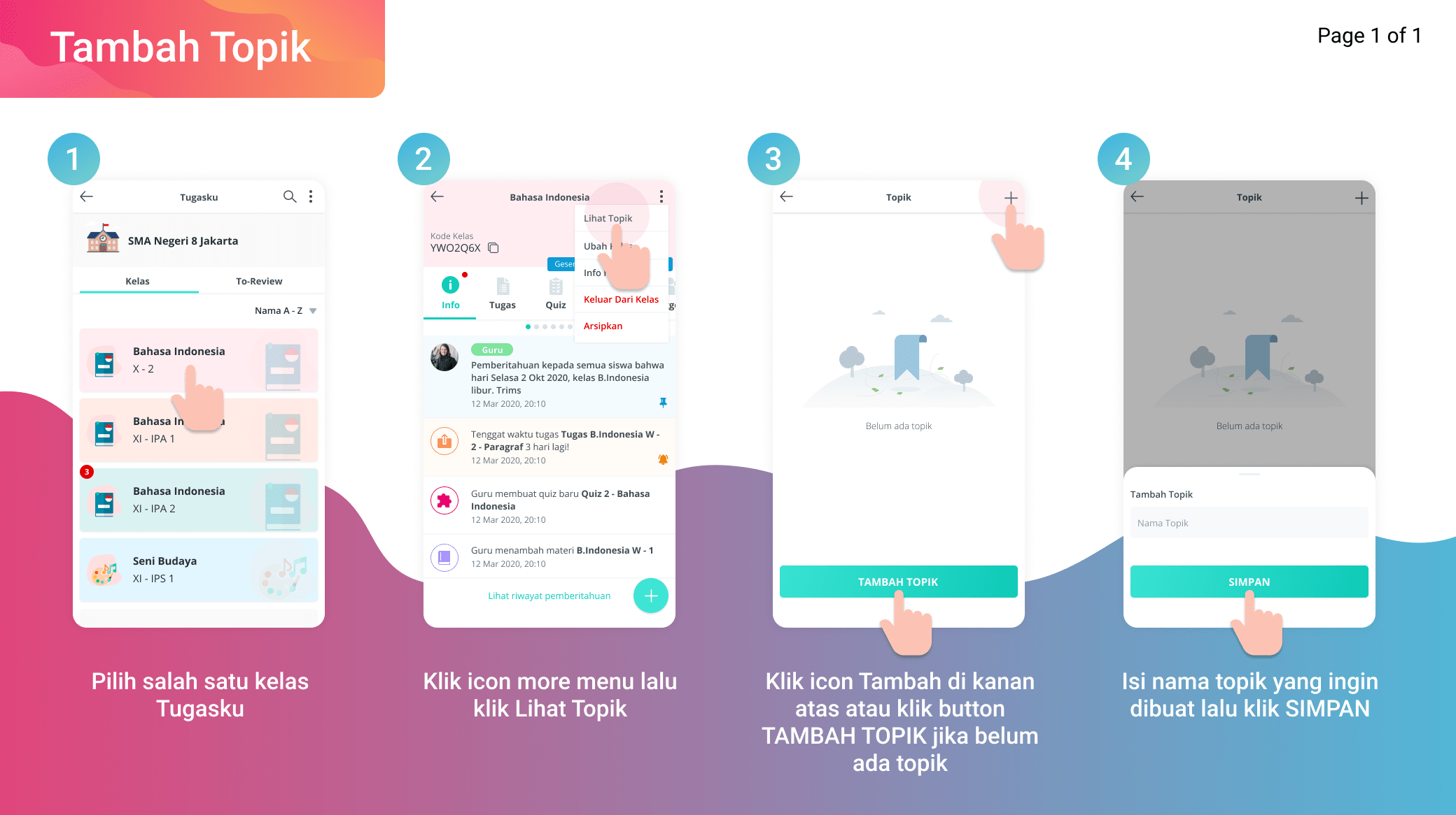 Guru dapat menambah topik baru di dalam kelas. Topik tersebut dapat dipakai di tugas, materi, dan quiz sekaligus.