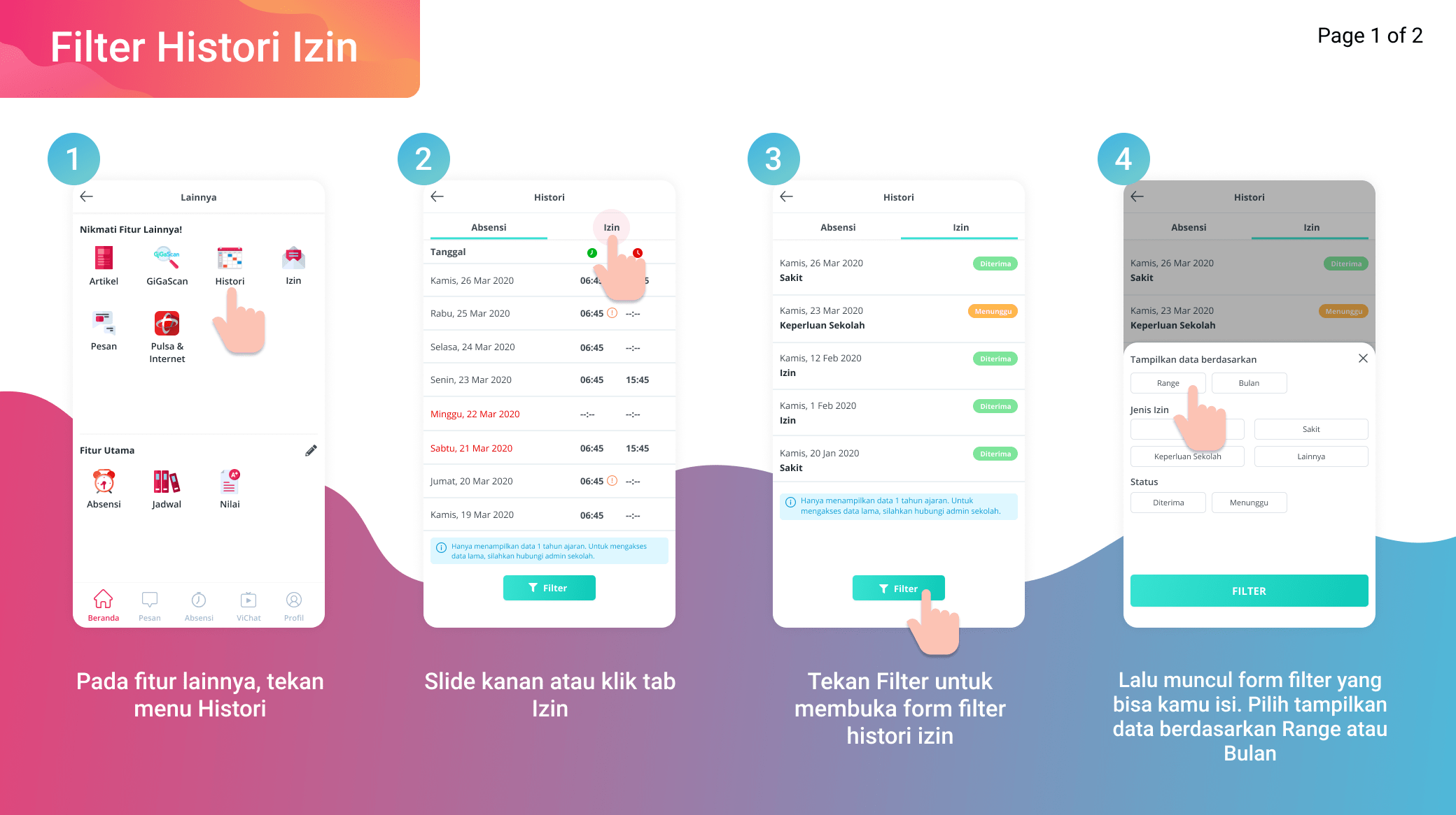 Selain melihat detail izin, kamu juga dapat memfilter data izin jika kamu ingin melihat urutan data