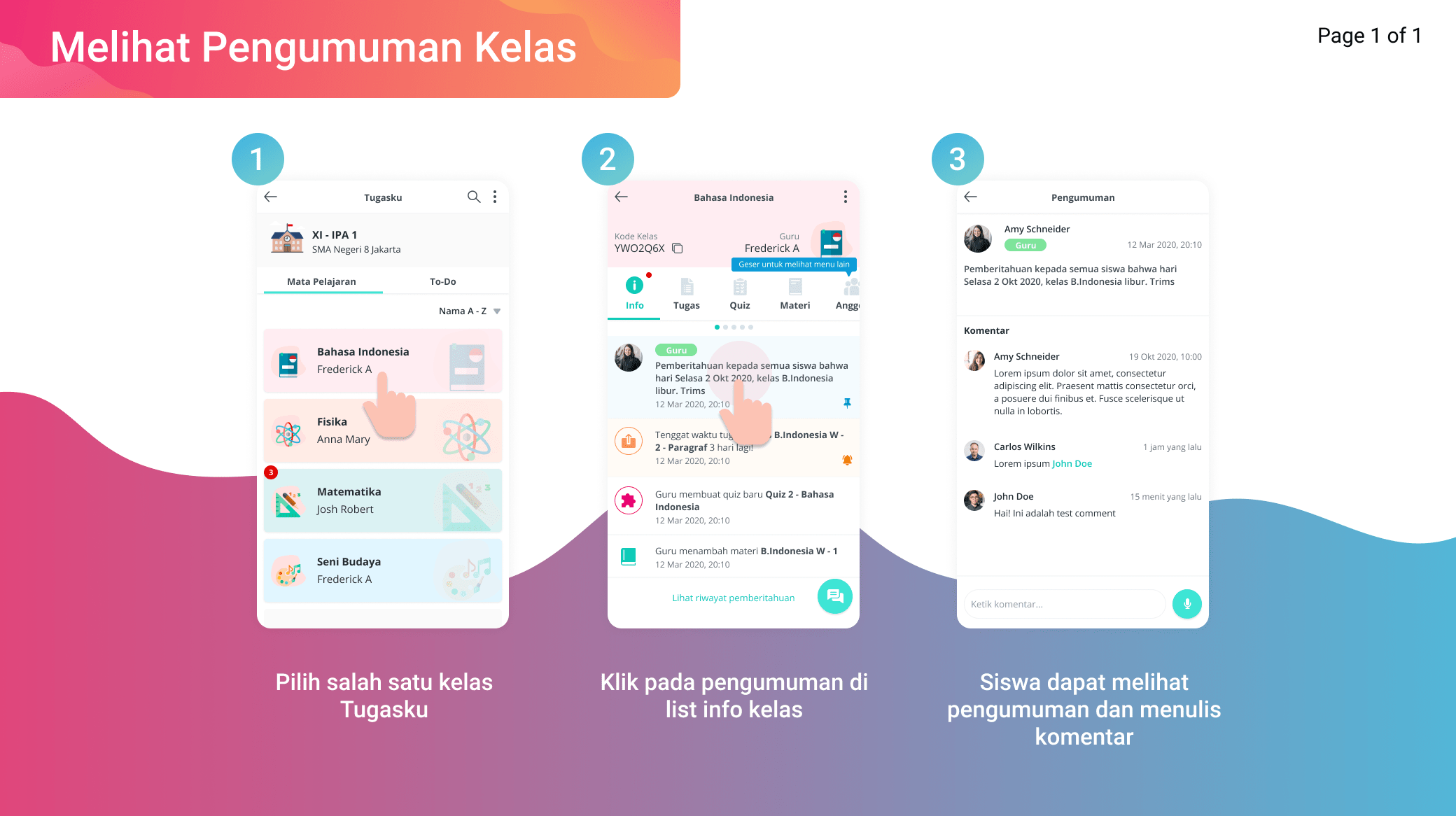 Siswa dapat melihat pengumuman dan menulis komentar