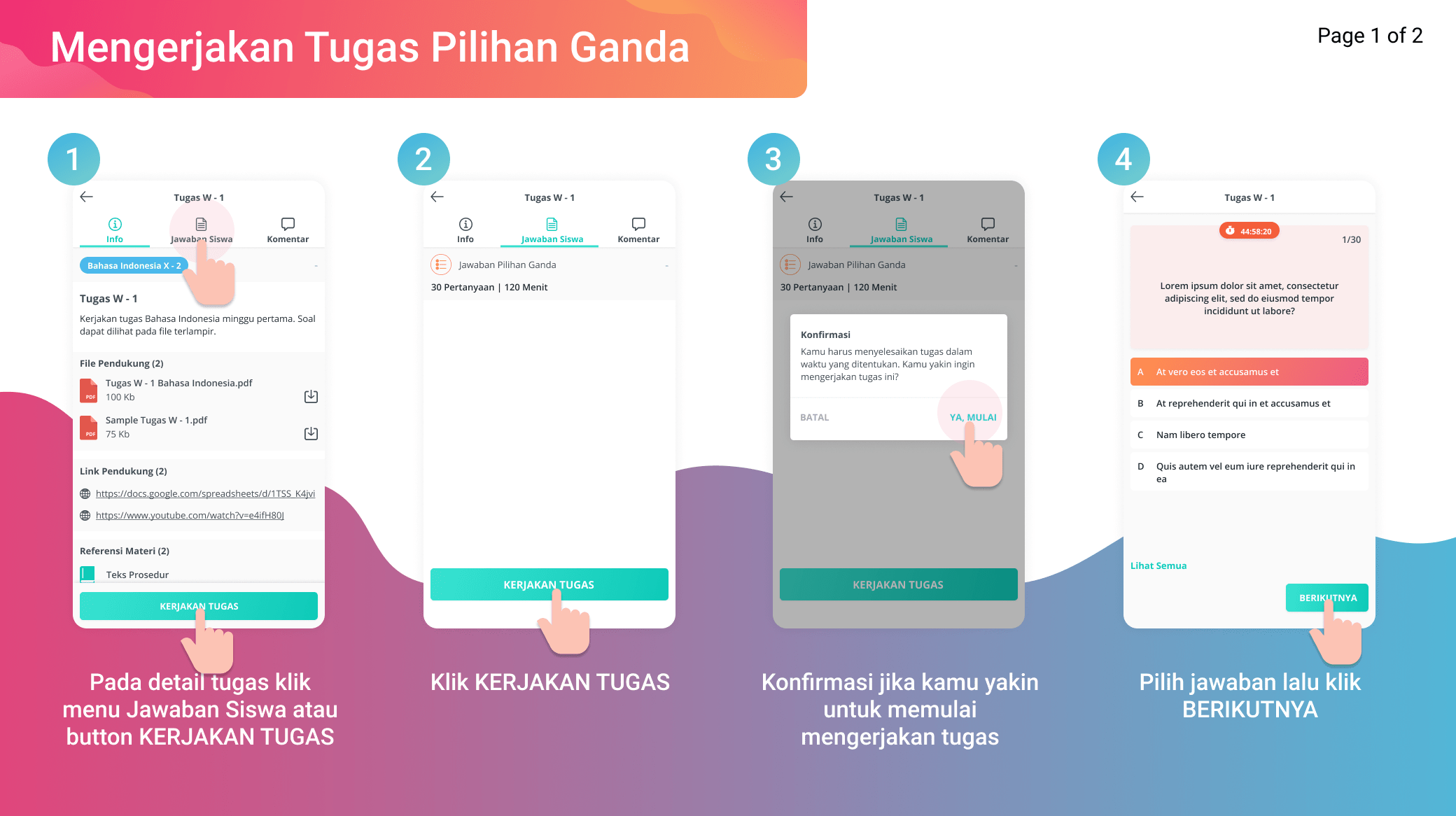 Berikut merupakan tahapan untuk mengerjakan tugas pilihan ganda.