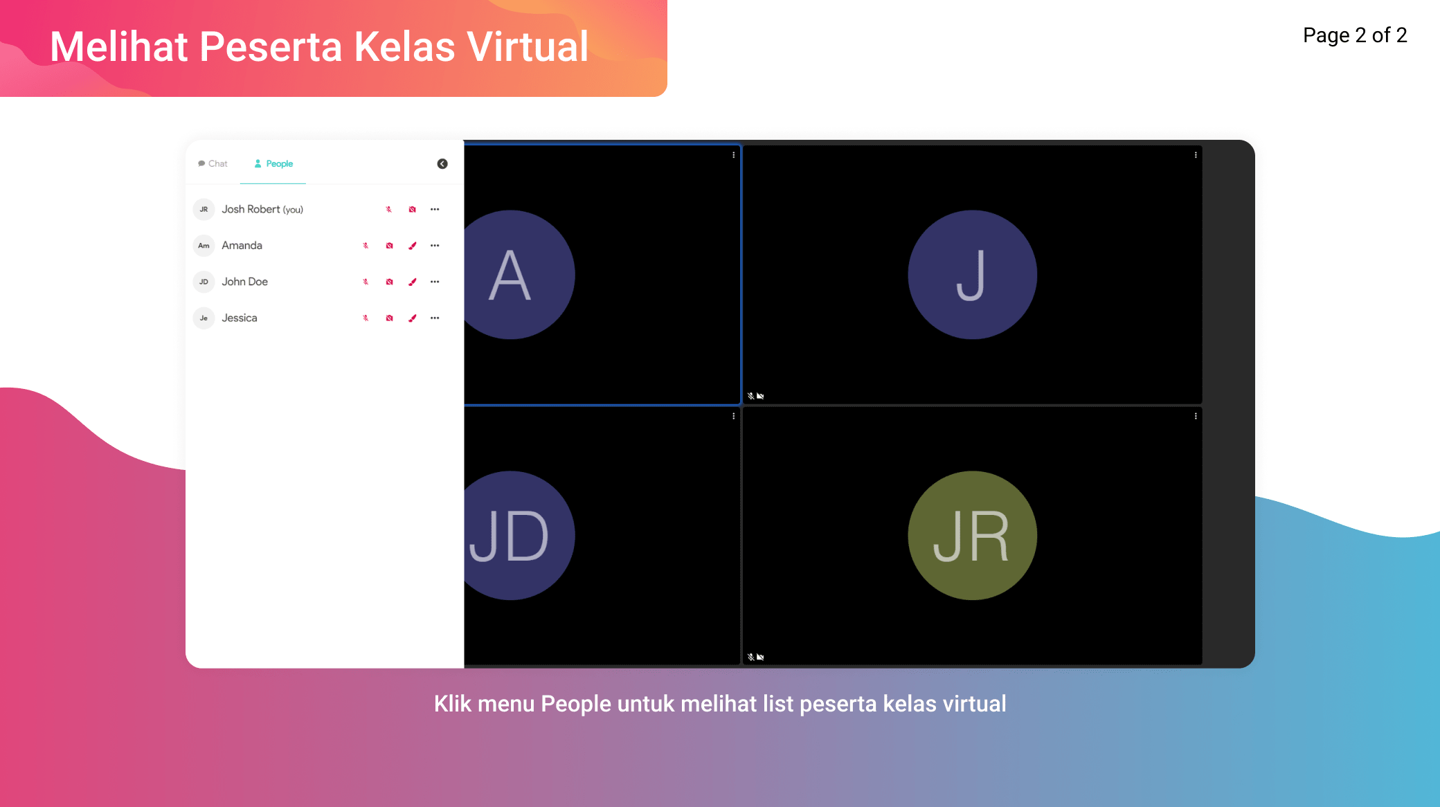 Berikut merupakan cara melihat peserta kelas virtual jika menggunakan laptop atau PC.