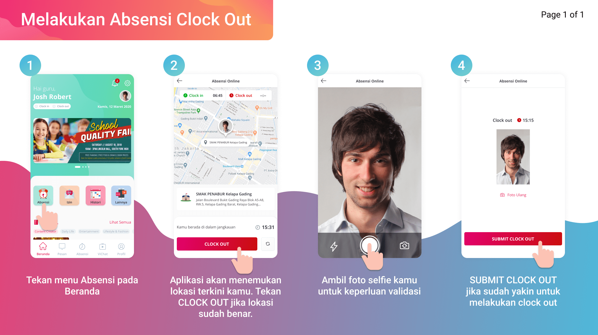 Berikut merupakan tahapan untuk melakukan absensi clock out.