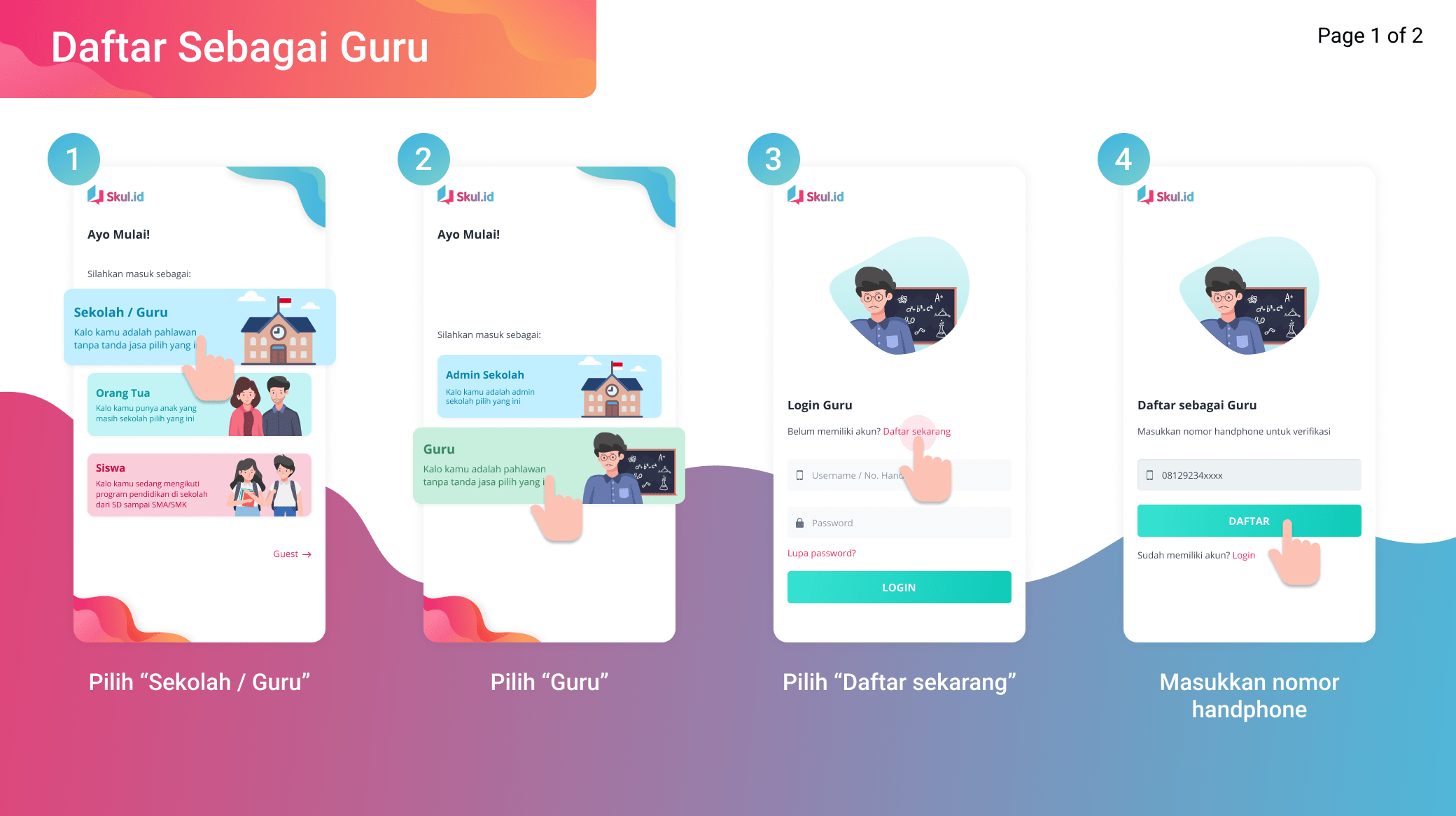 Jika kamu adalah guru, untuk memulai menggunakan aplikasi Skul.id, kamu harus mendaftar sebagai guru.