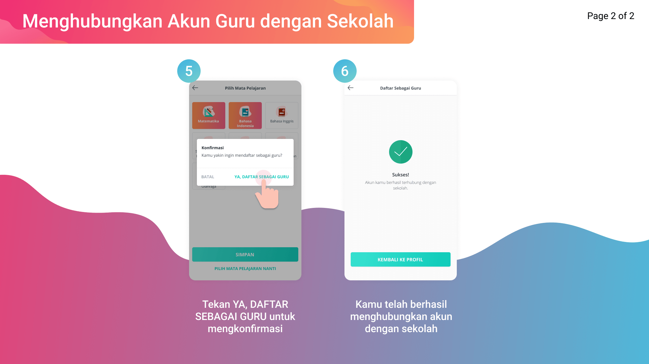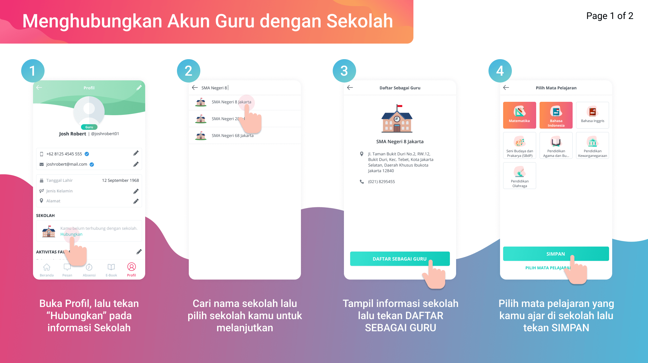 Berikut merupakan tahapan untuk menghubungkan akun guru dengan sekolah.