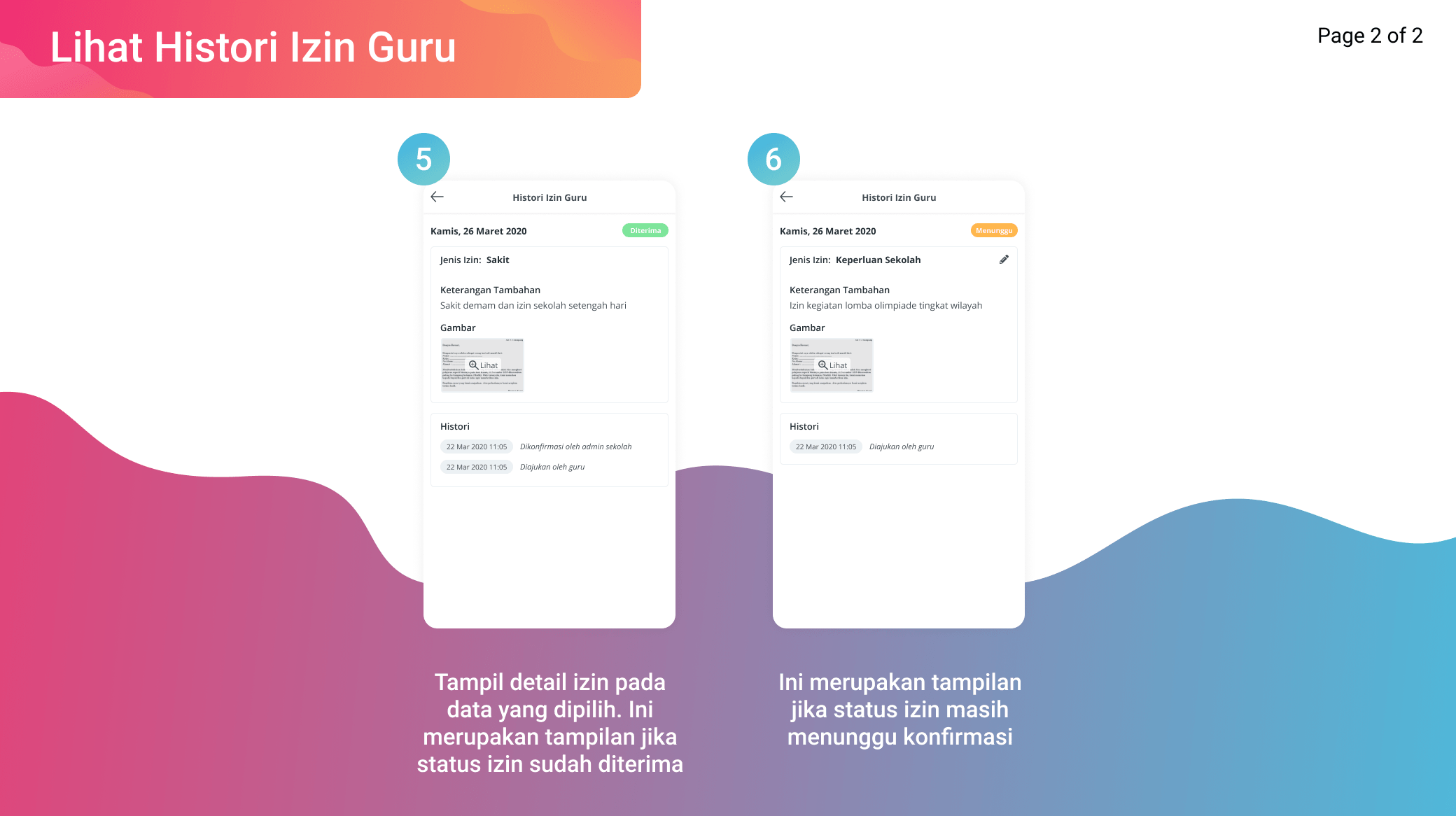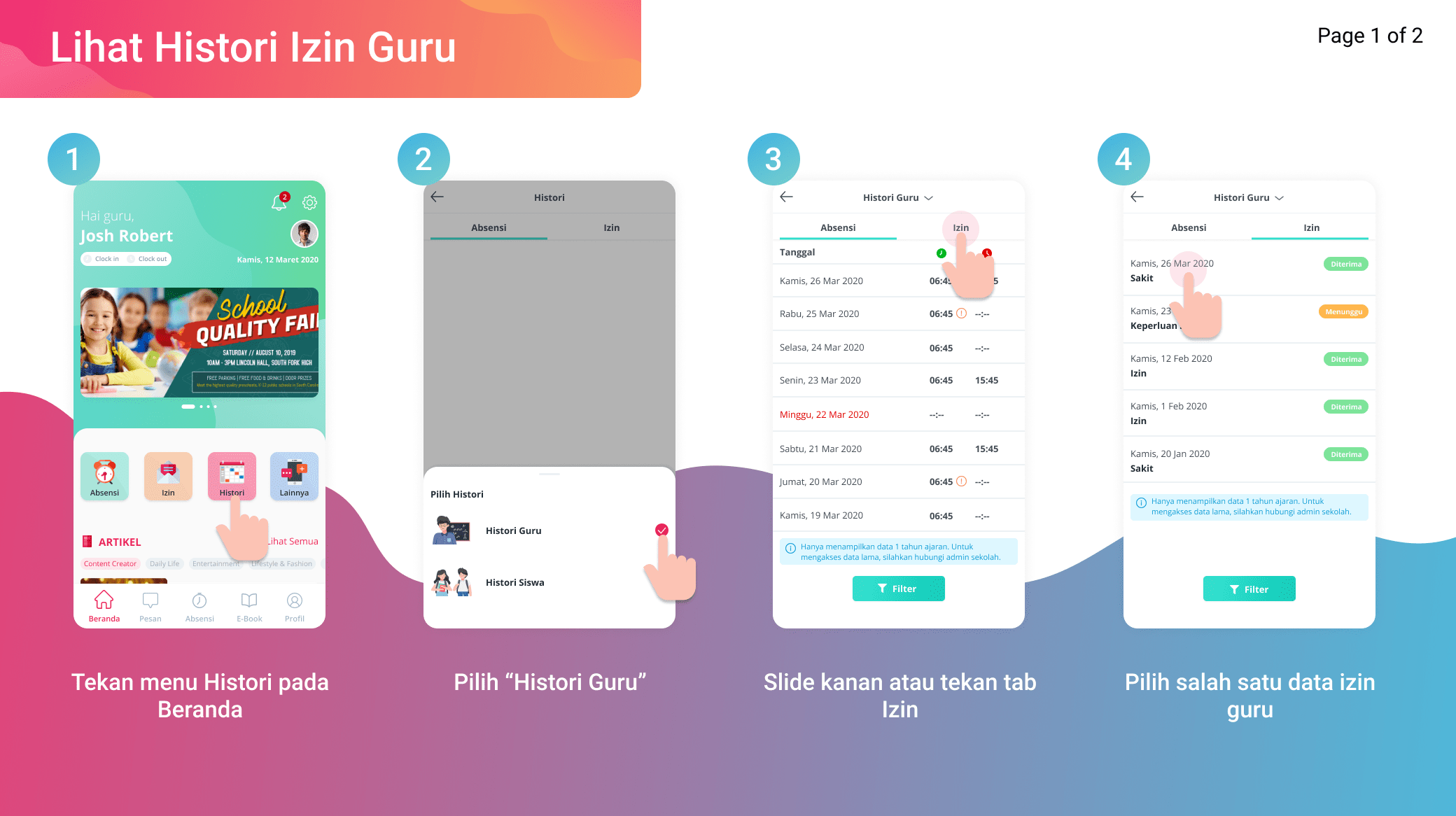 Berikut merupakan tahapan untuk lihat histori izin guru.