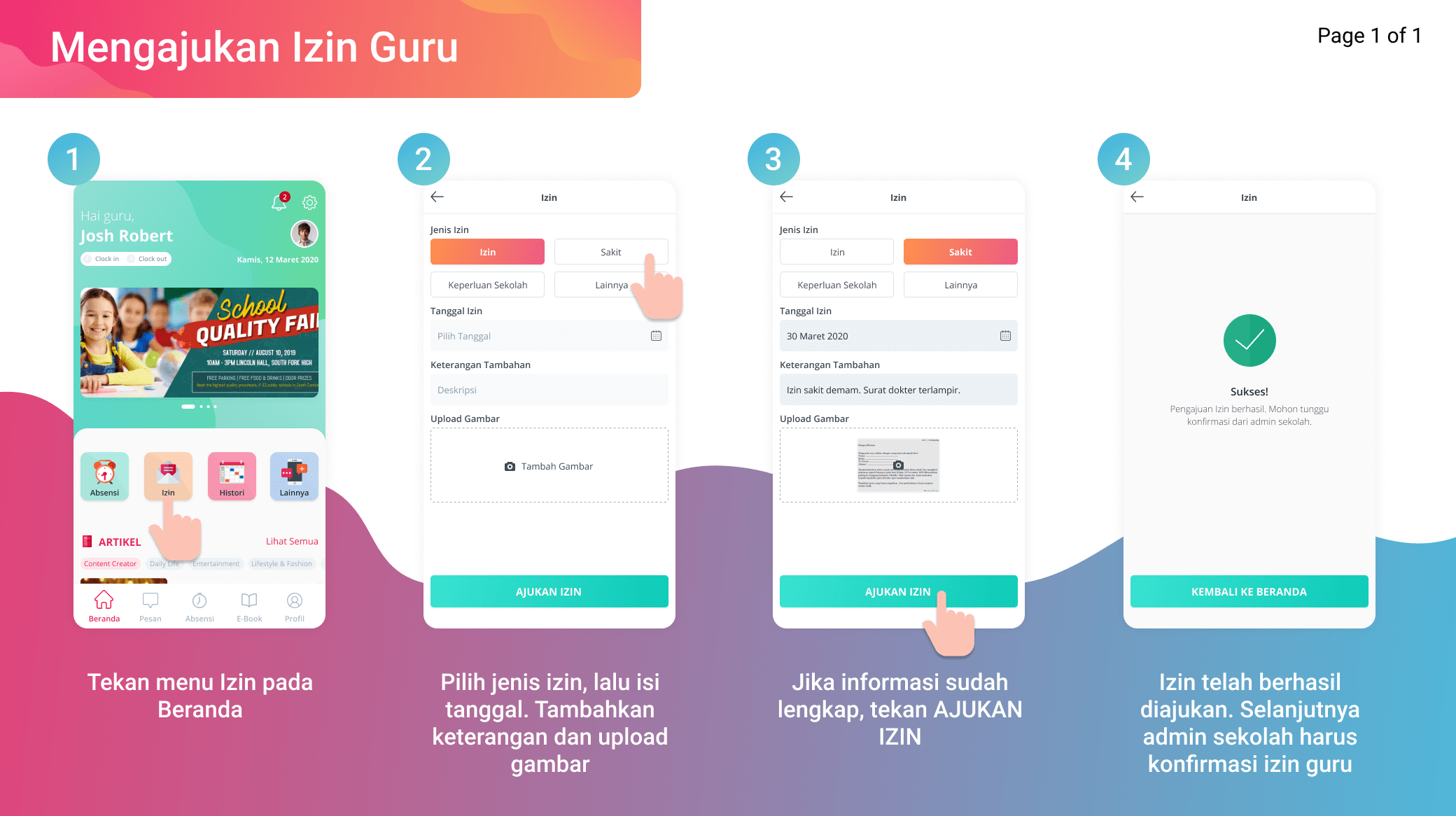Berikut merupakan tahapan untuk mengajukan izin oleh guru.