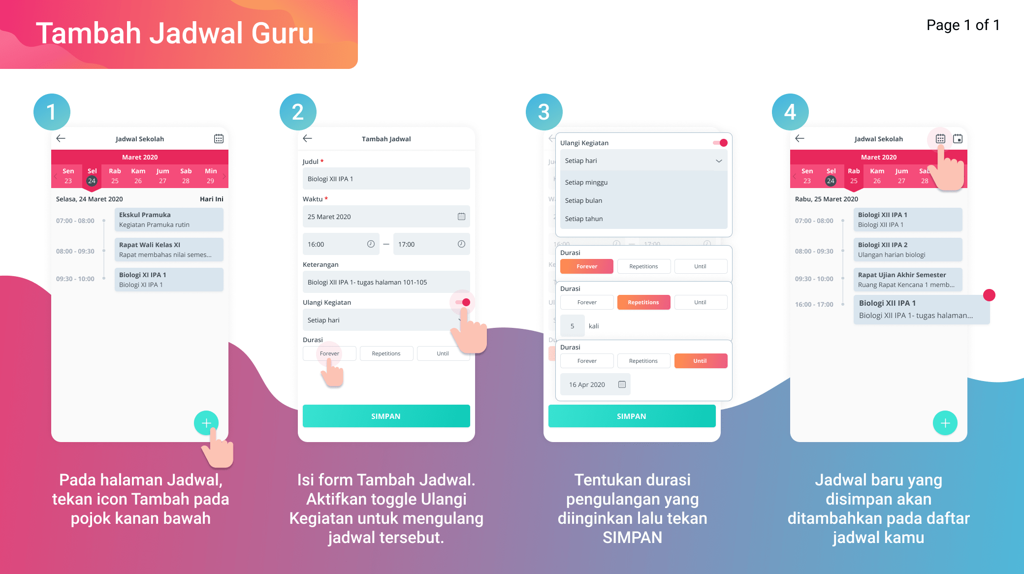 Tentukan durasi pengulangan yang diinginkan lalu tekan SIMPAN. Jadwal dapat diulang