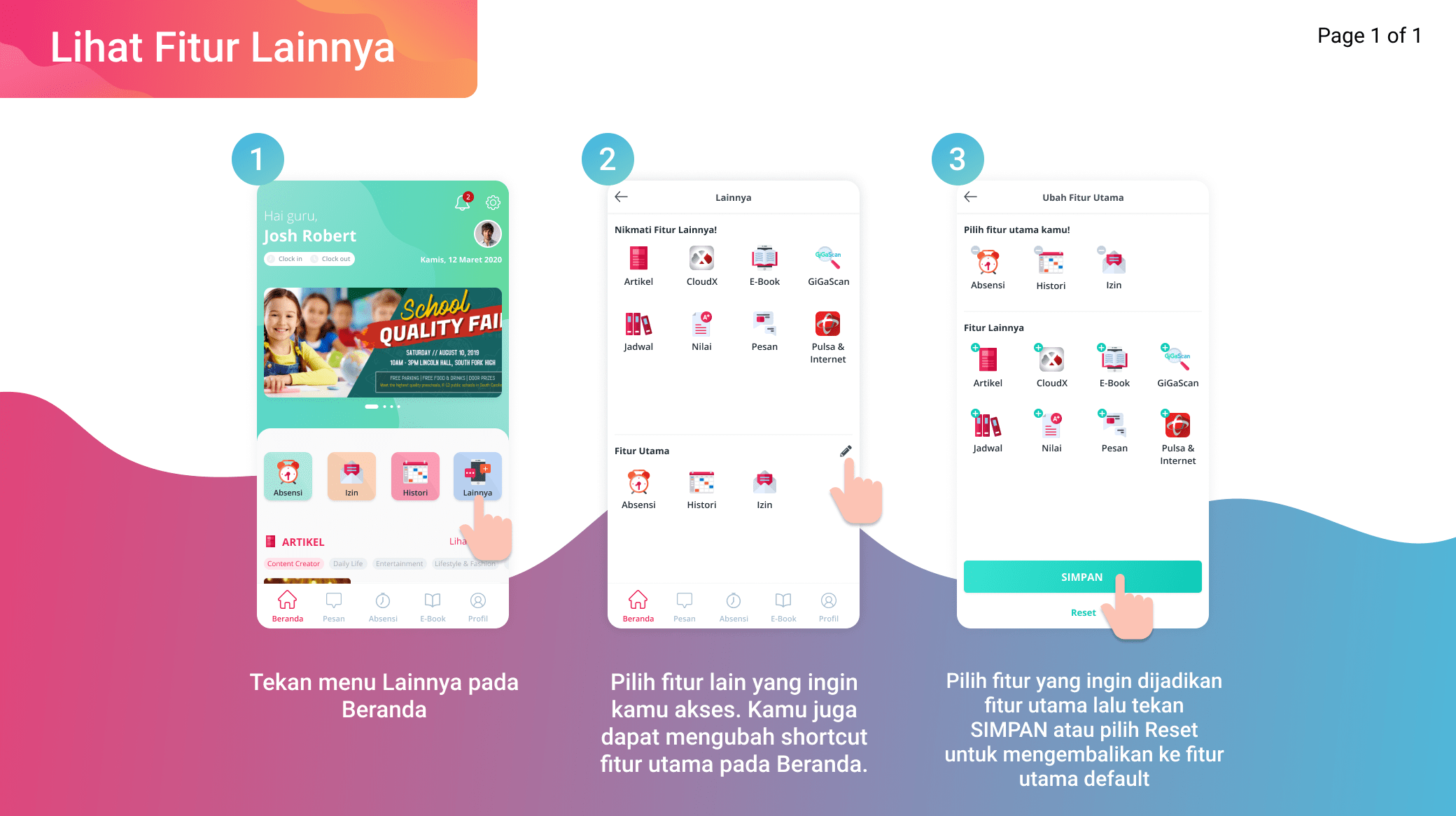 Pilih fitur yang ingin dijadikan fitur utama lalu tekan SIMPAN atau pilih RESET untuk