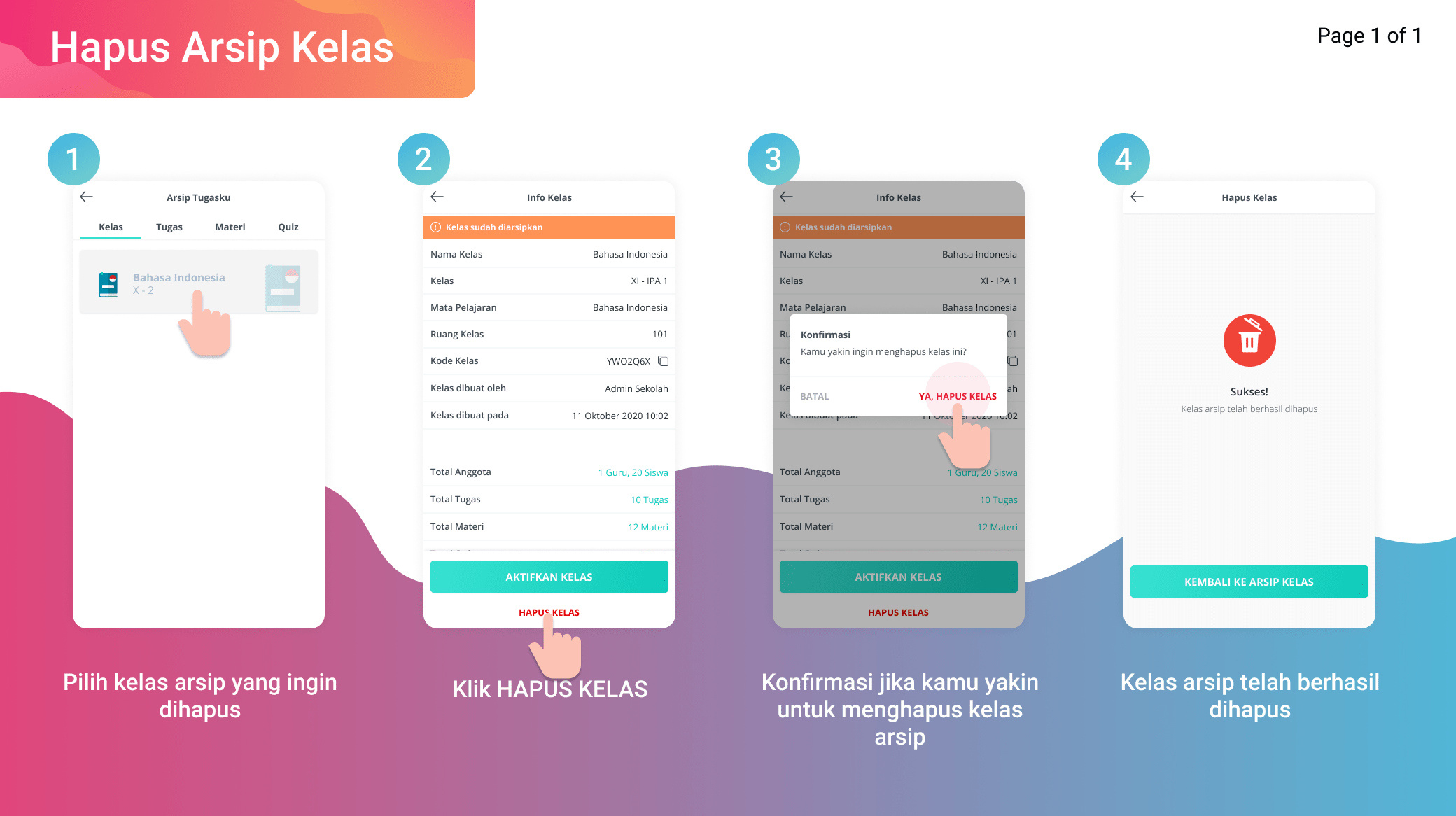 - Konfirmasi jika kamu yakin untuk menghapus kelas arsip