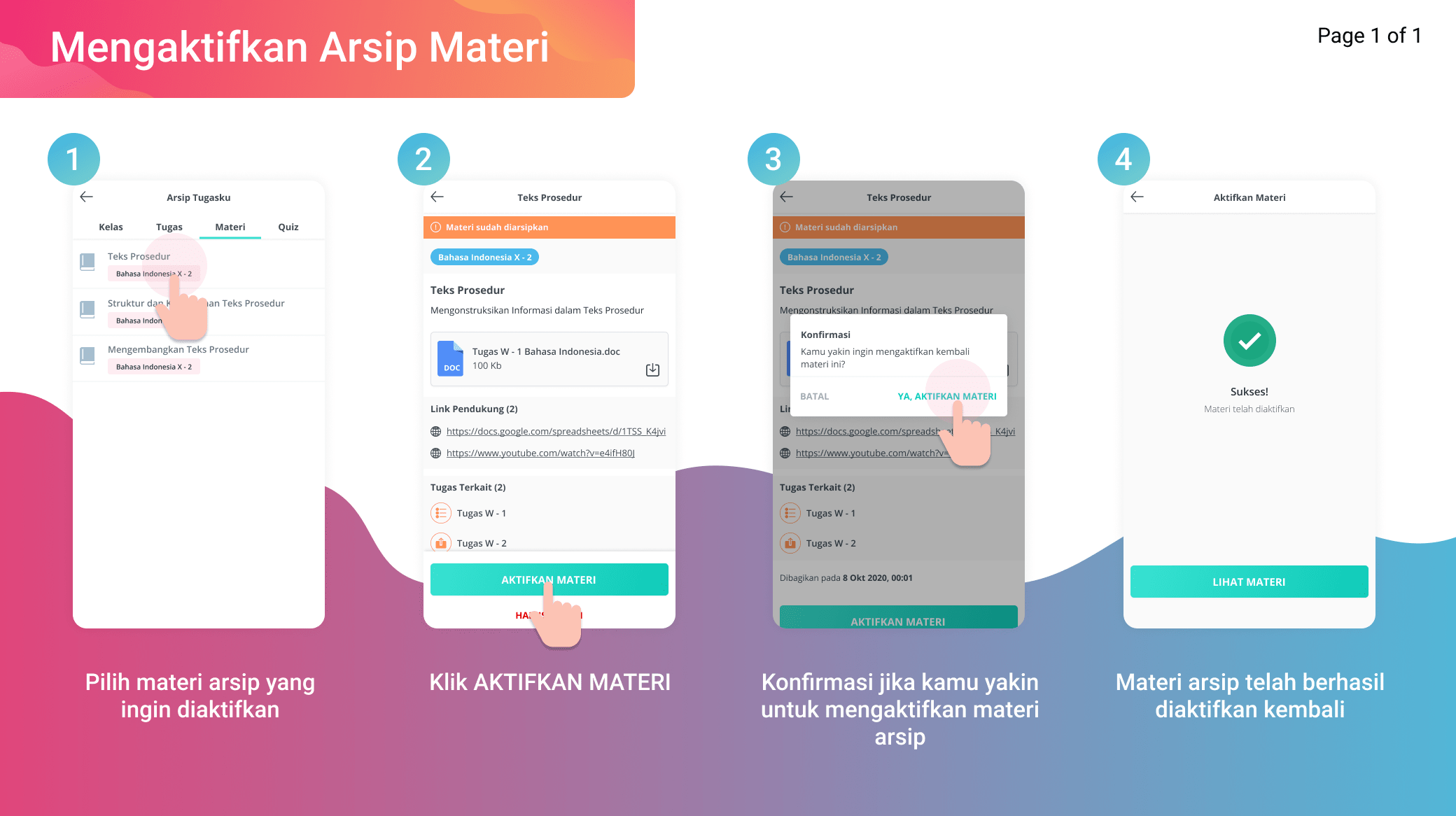 - Konfirmasi jika kamu yakin untuk mengaktifkan materi arsip