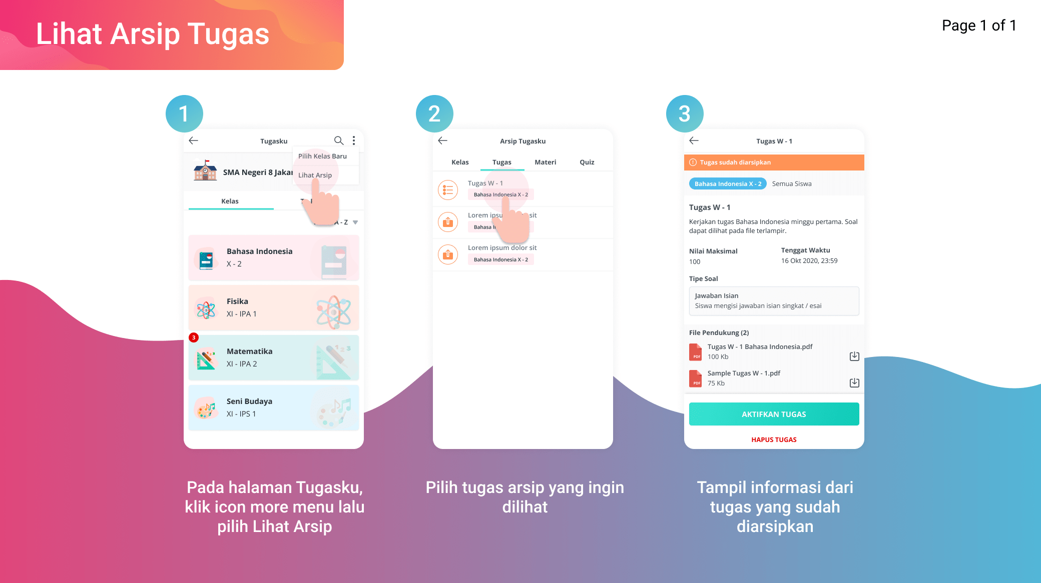 Berikut merupakan tahapan untuk melihat arsip tugas.