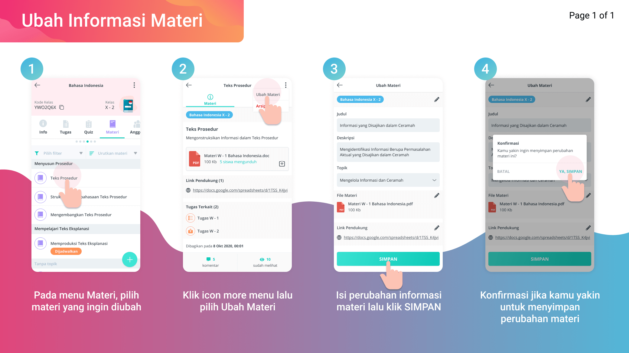 Guru dapat mengubah informasi materi yang ada di dalam kelas Tugasku. Perubahan info materi akan langsung dapat diakses oleh anggota kelas Tugasku.