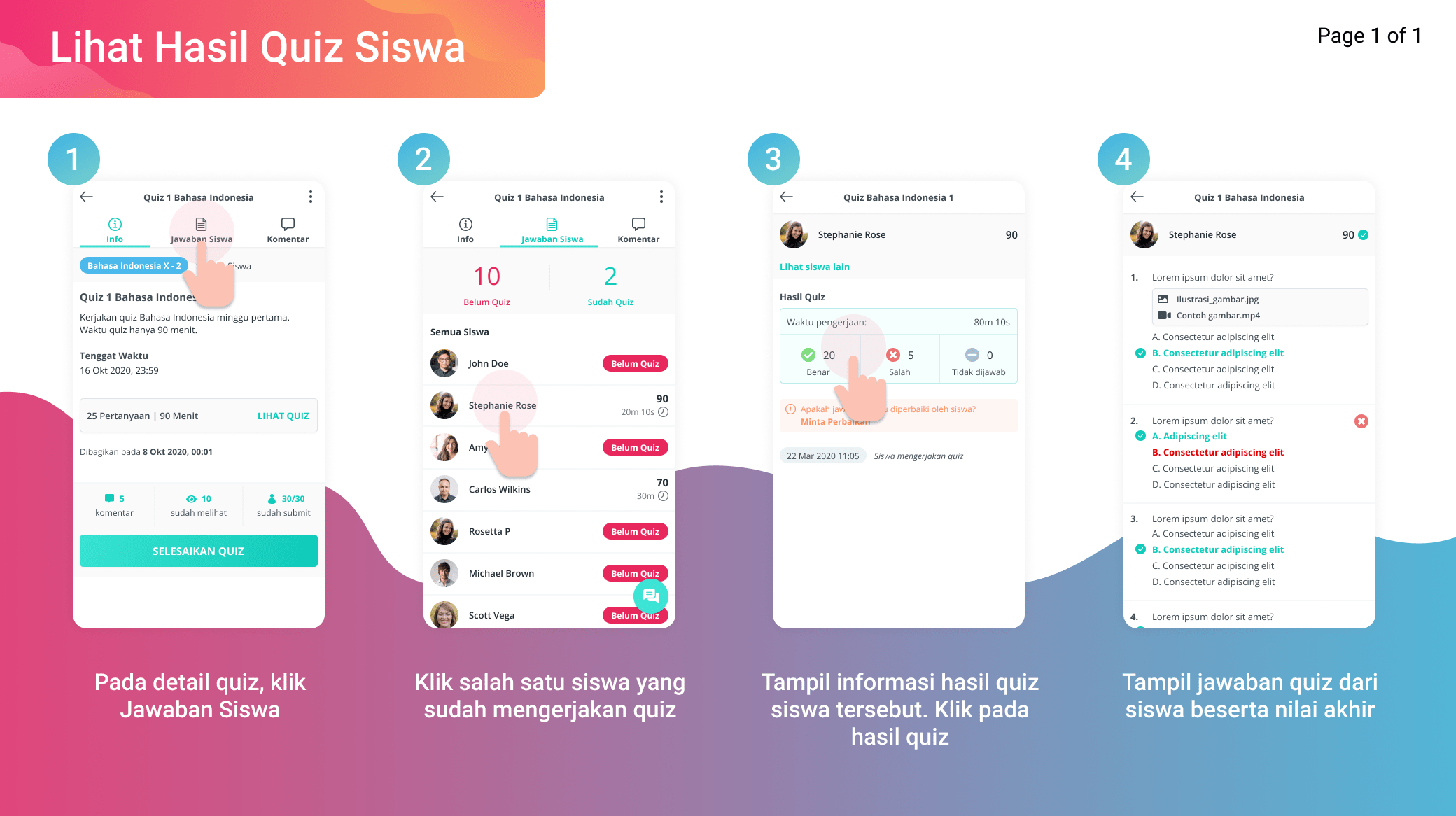Berikut merupakan tahapan untuk melihat hasil quiz siswa.