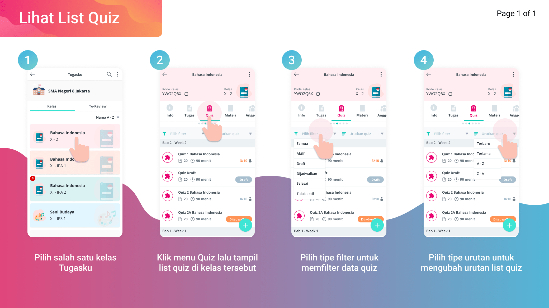 Berikut merupakan tahapan untuk melihat list quiz.