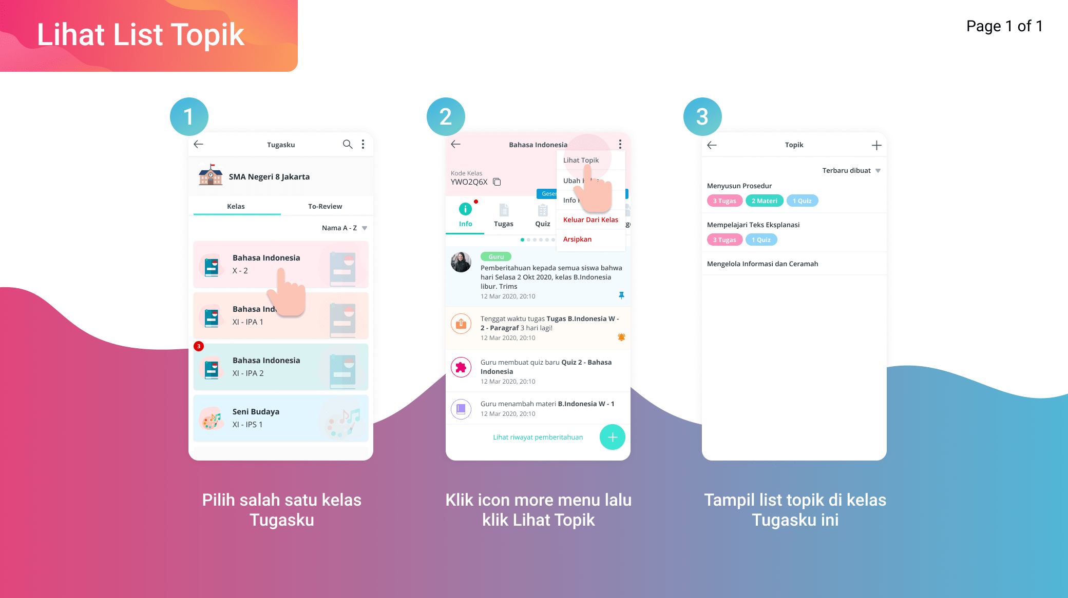 Tampil list topik di kelas Tugasku ini