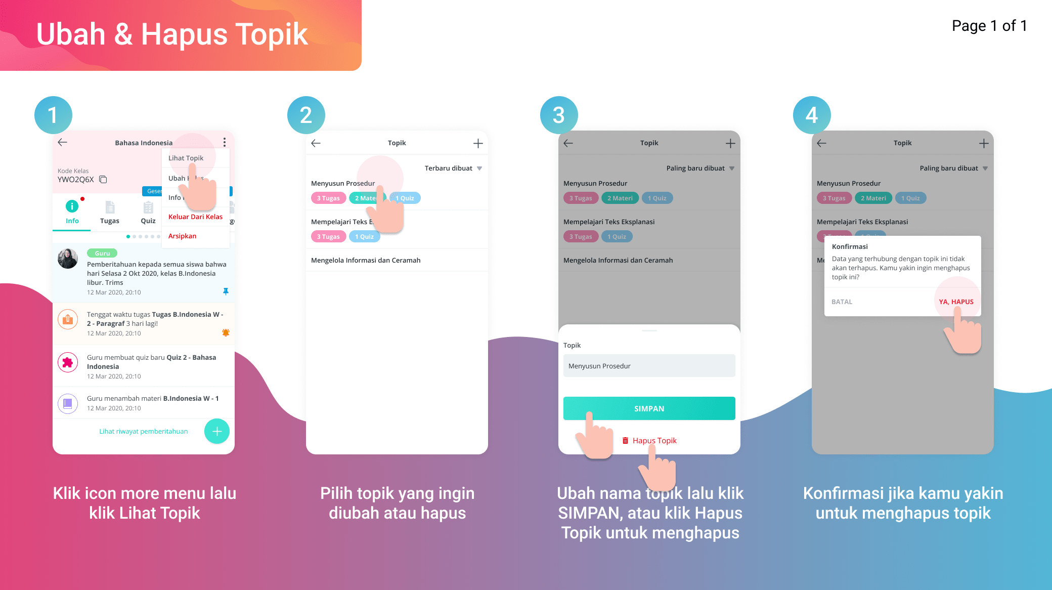Berikut merupakan tahapan untuk mengubah dan menghapus topik.
