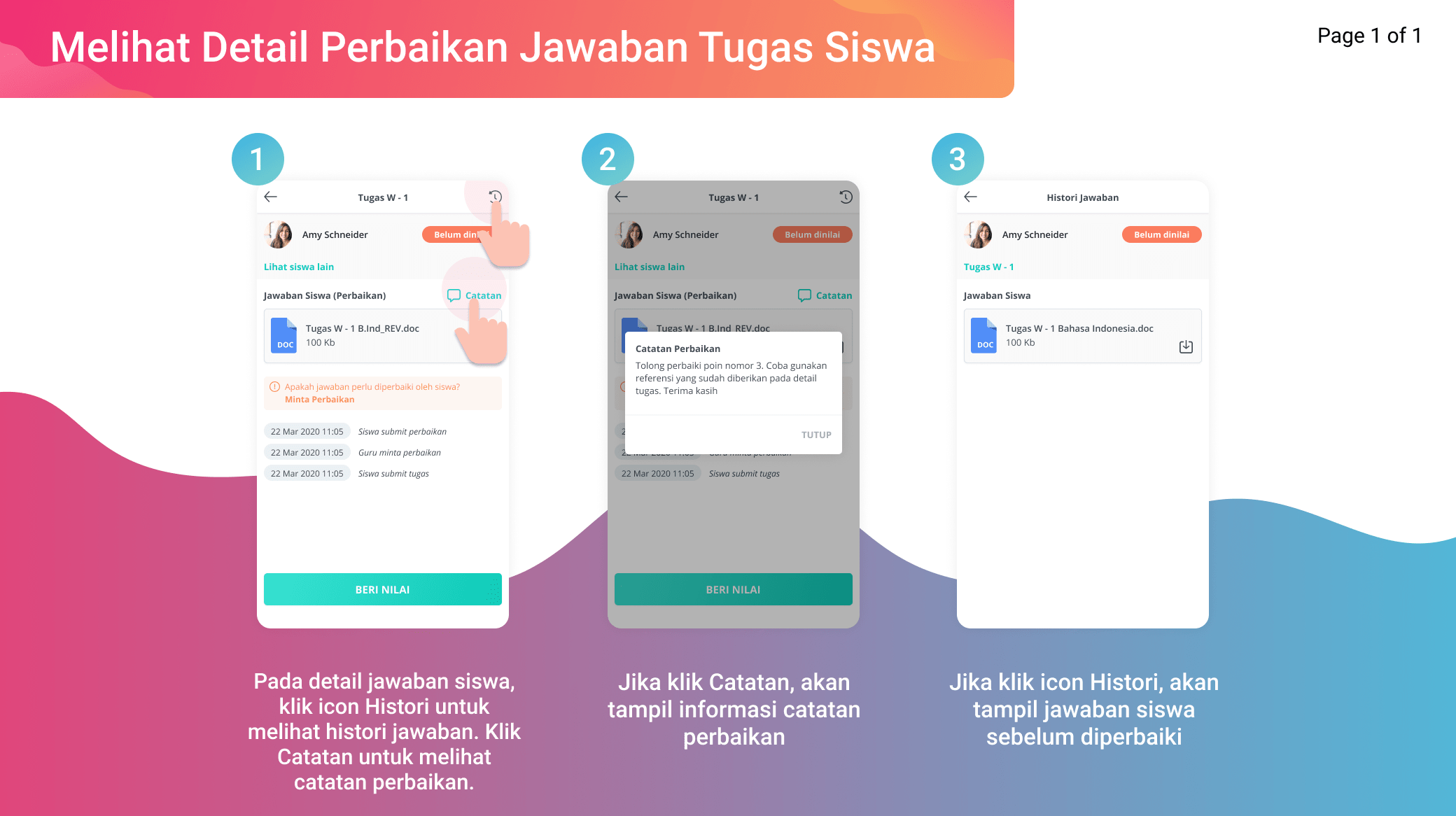 Berikut merupakan tahapan untuk melihat detail perbaikan jawaban tugas siswa.