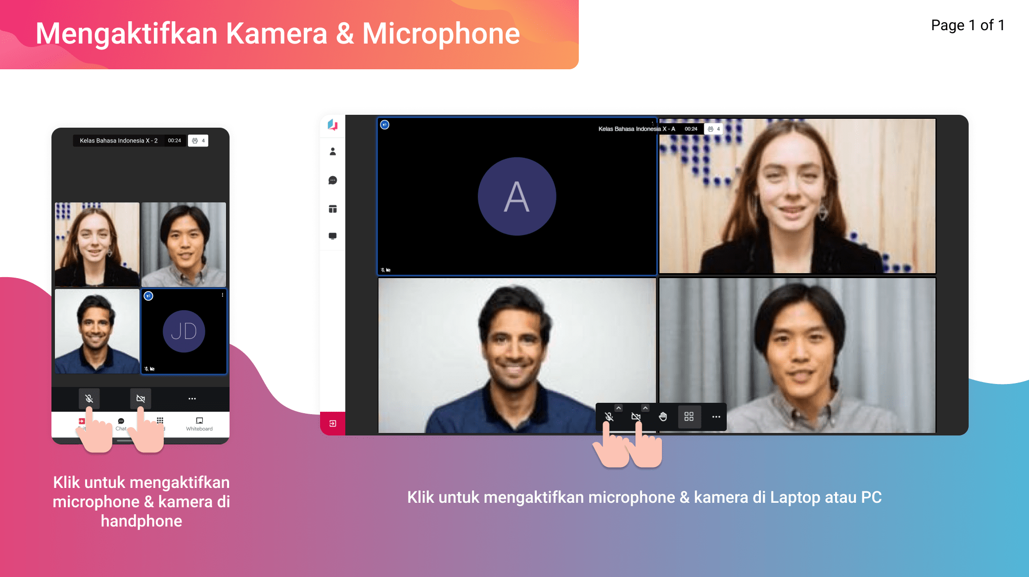 Tips: Jika peserta tidak dapat mengaktifkan kamera dan audio, silahkan refresh halaman kelas virtual lalu coba aktifkan kembali.