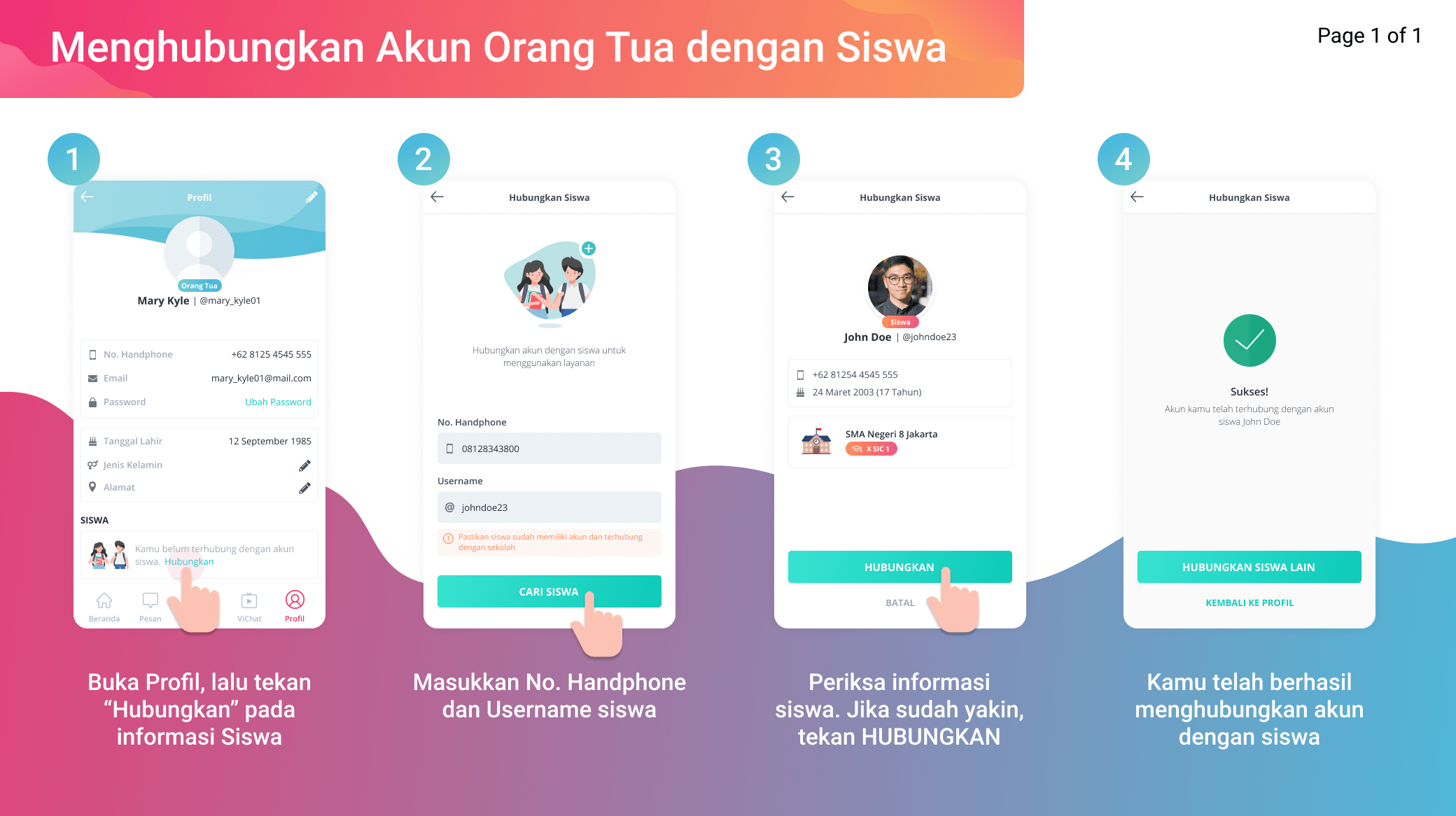 Berikut merupakan tahapan untuk menghubungkan akun orang tua dengan siswa.