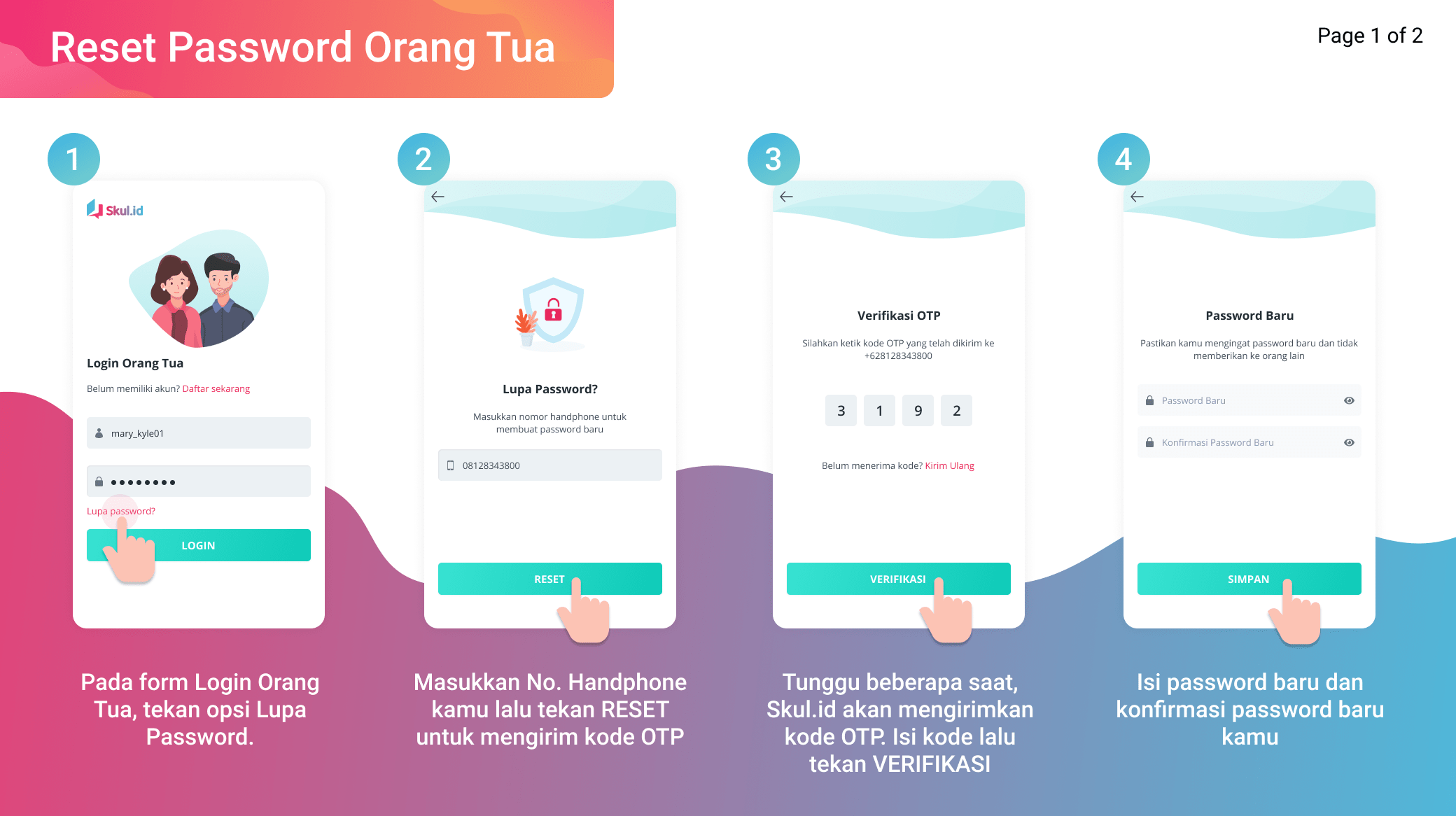 Jika kamu ingin masuk aplikasi namun kamu lupa password yang sudah kamu buat, kamu dapat mereset password. Pastikan nomor handphone yang kamu daftarkan aktif karena Skul.id akan mengirim kode OTP untuk verifikasi.