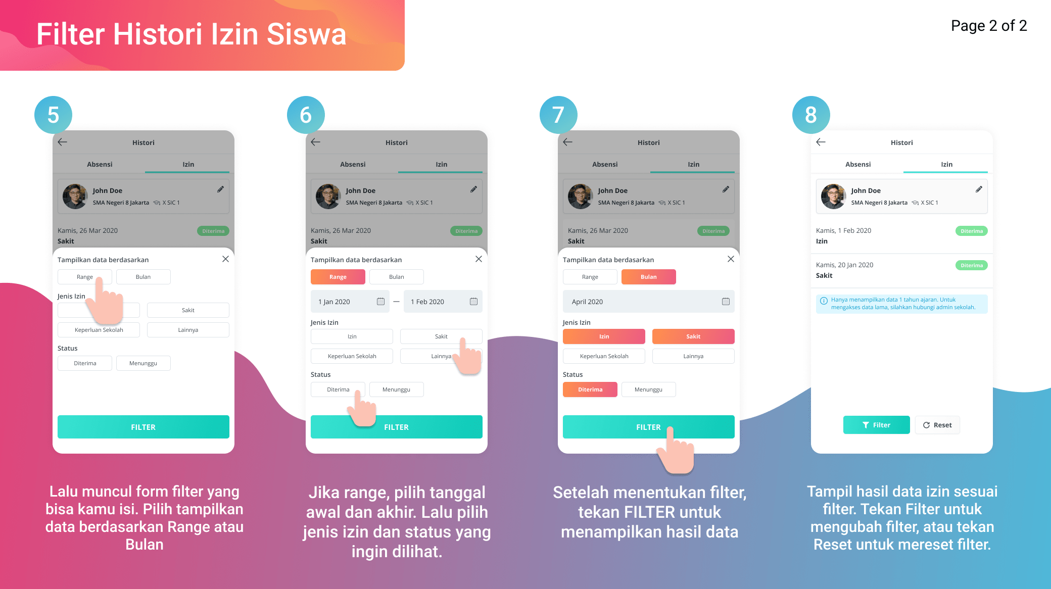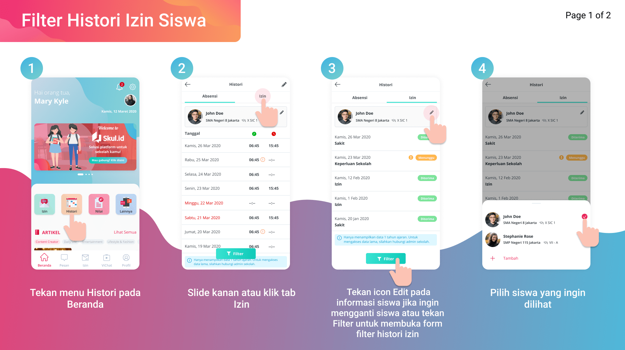 Berikut merupakan tahapan untuk filter histori izin siswa.
