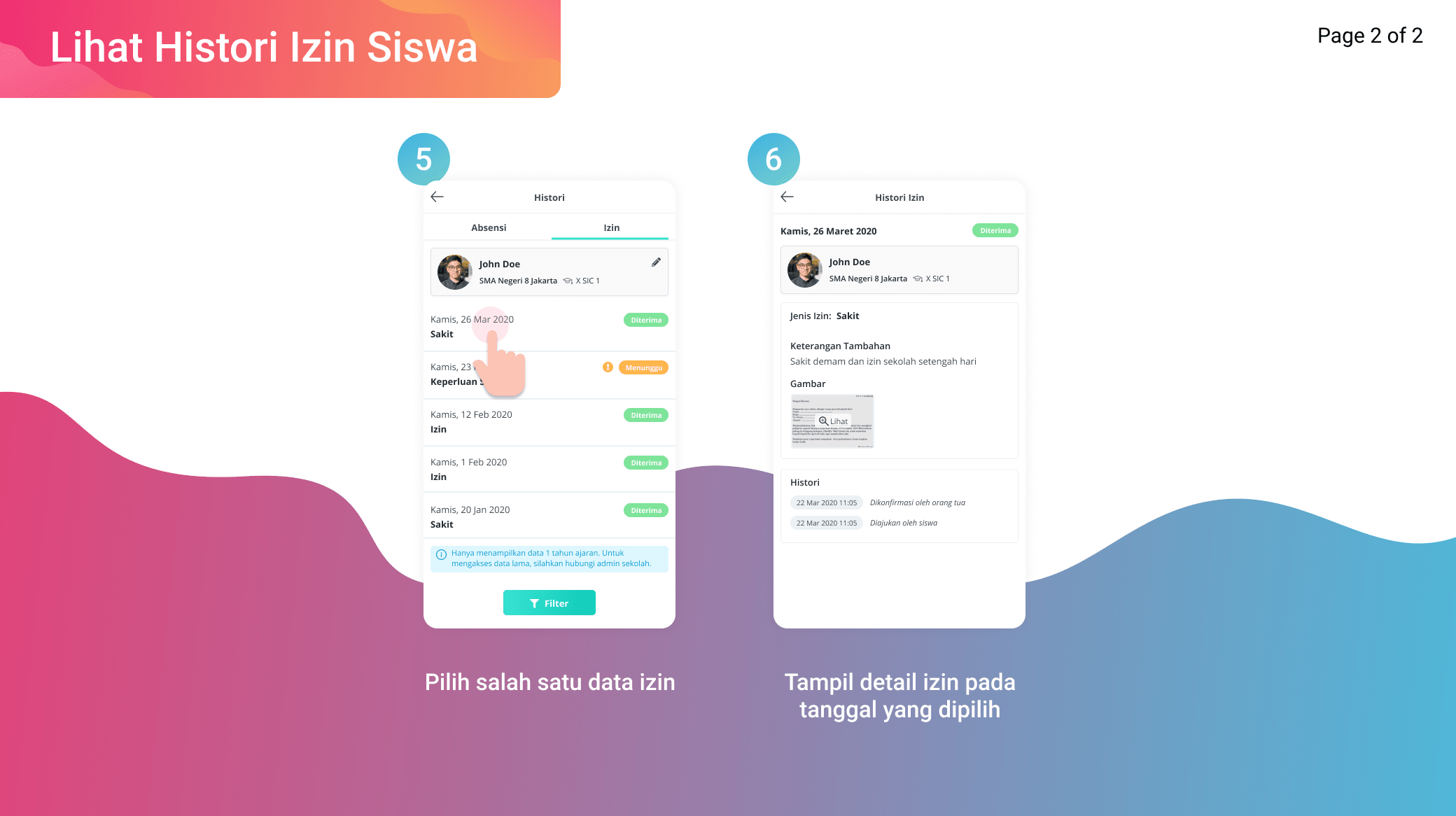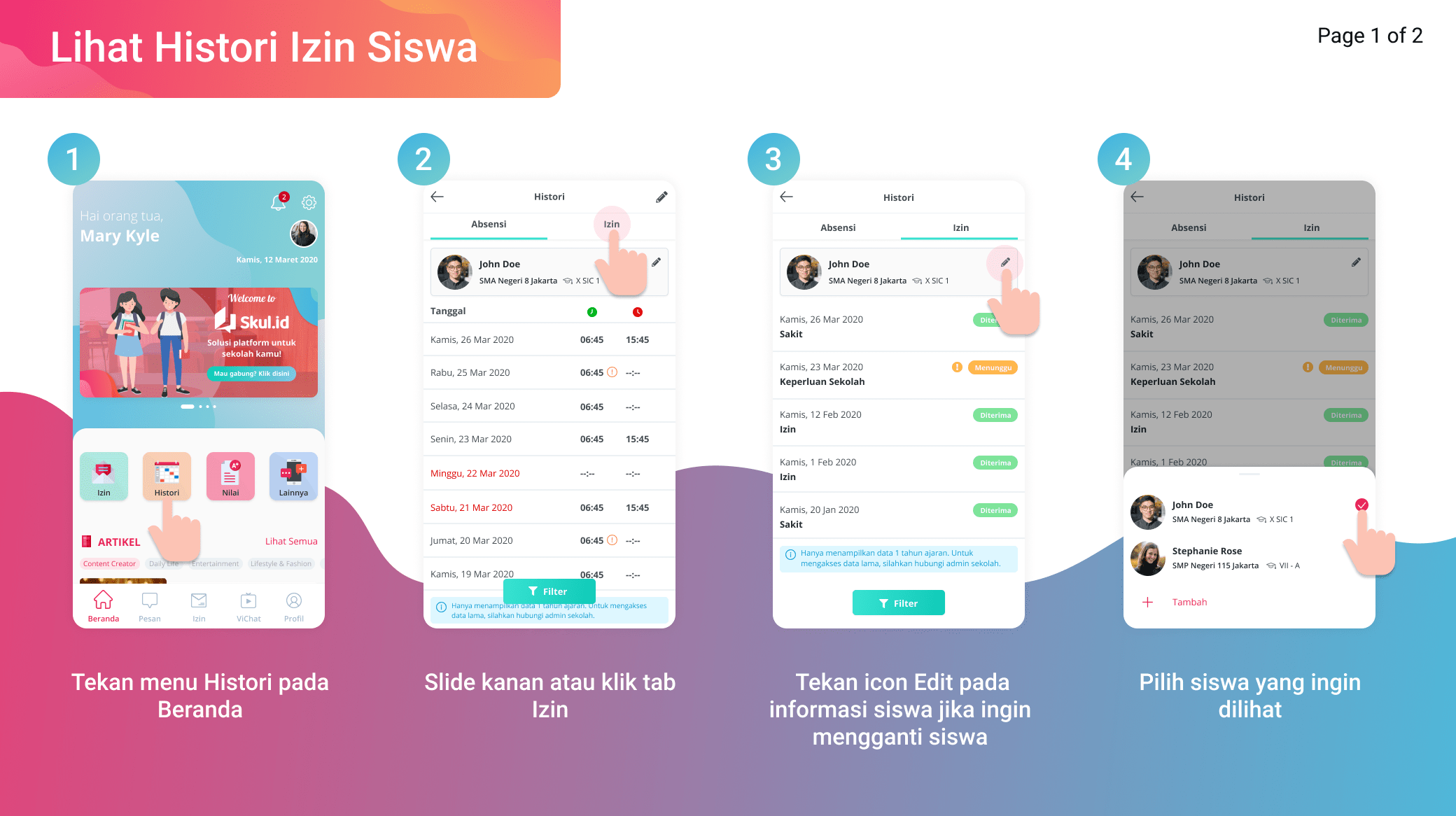 Berikut merupakan tahapan untuk lihat histori izin siswa.