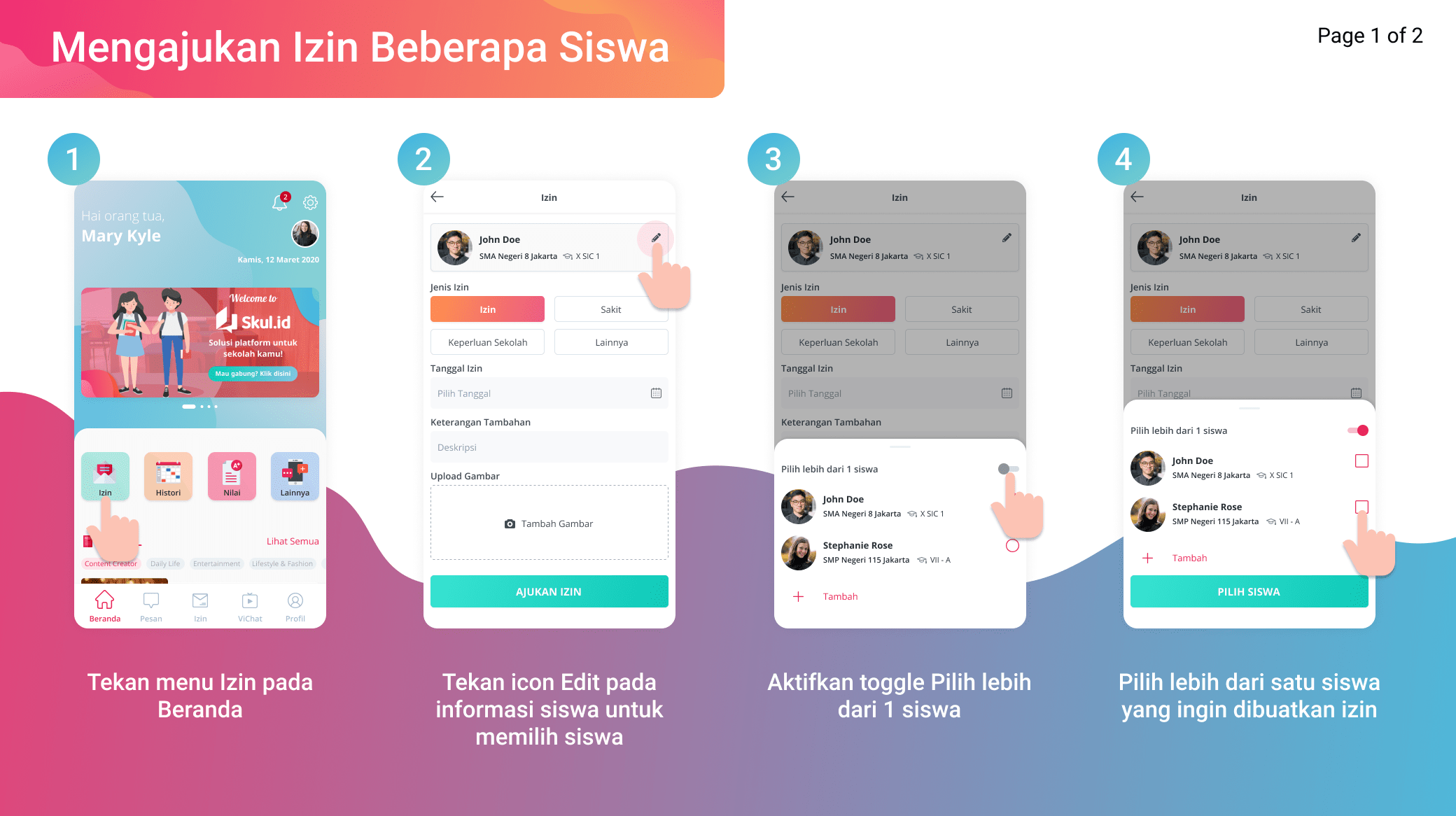 Berikut merupakan tahapan untuk mengajukan izin beberapa siswa.