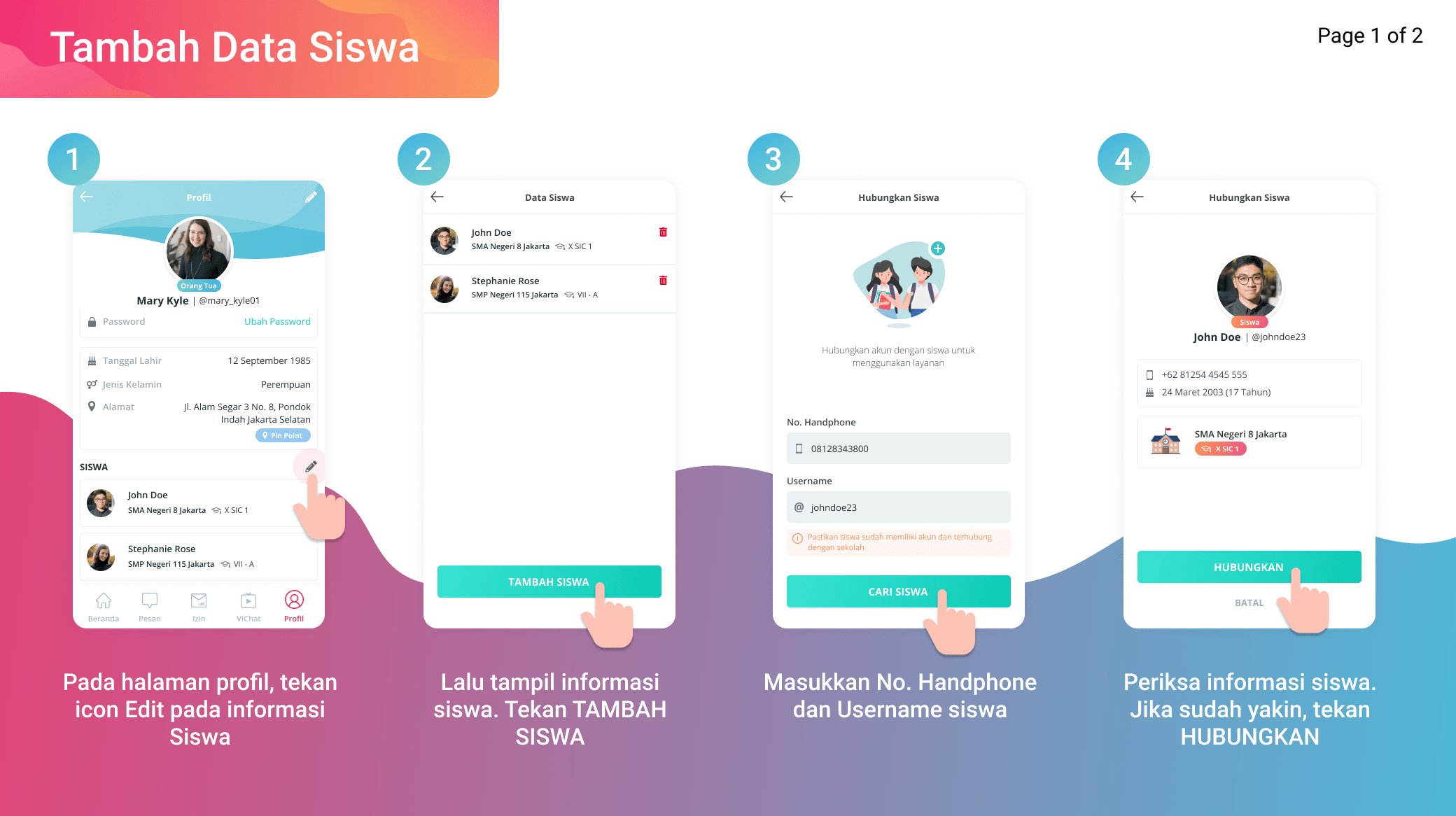 Berikut merupakan tahapan untuk tambah data siswa.