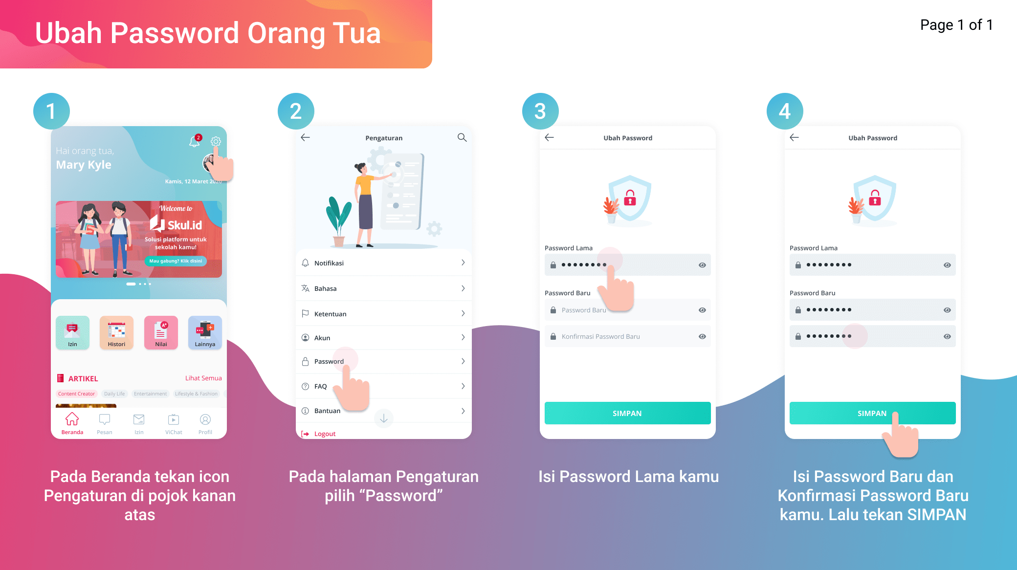 Berikut merupakan tahapan untuk ubah password orang tua.