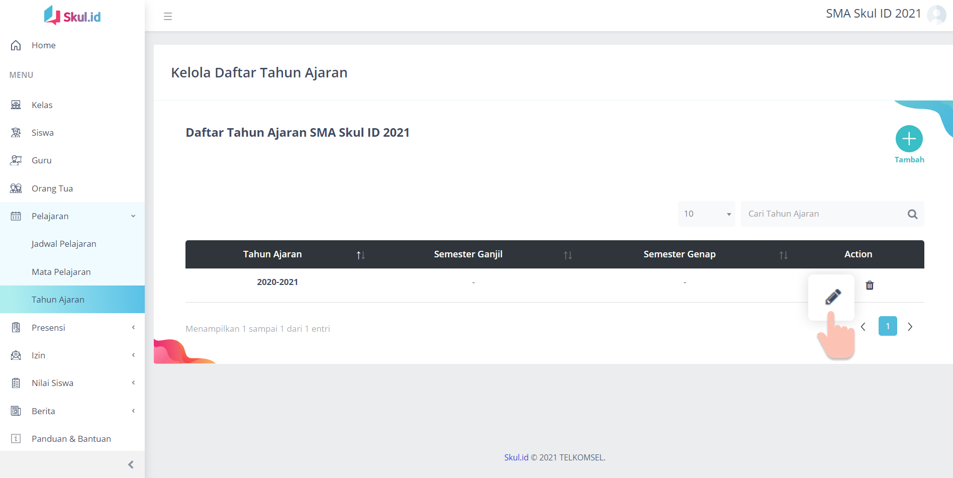 Klik icon Edit untuk melengkapi data tahun ajaran.