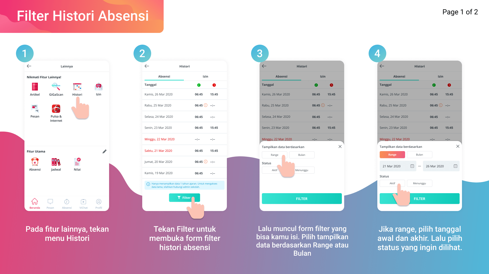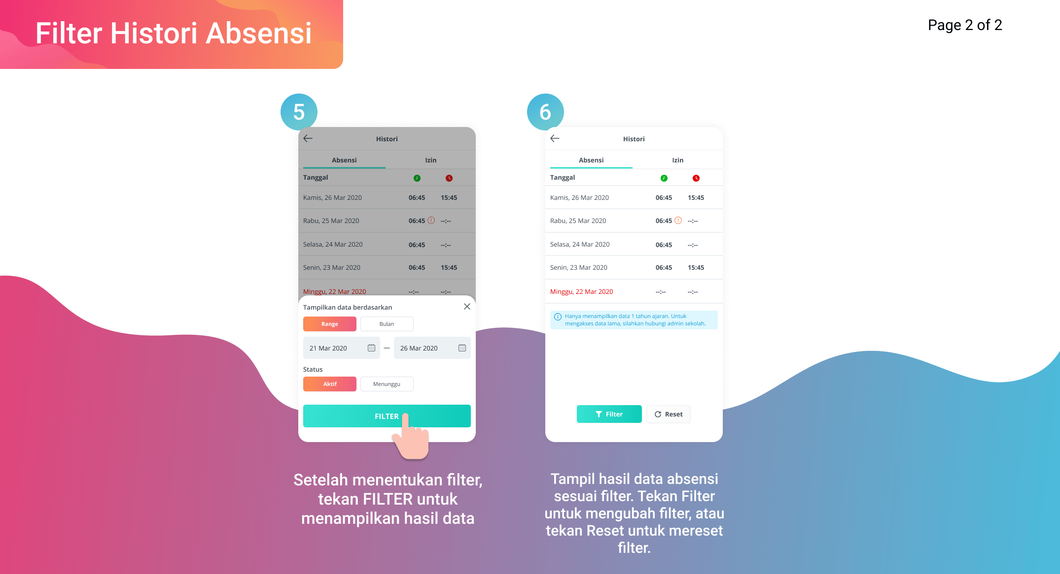 Selain melihat detail absensi, kamu juga dapat memfilter data absensi jika kamu ingin melihat urutan