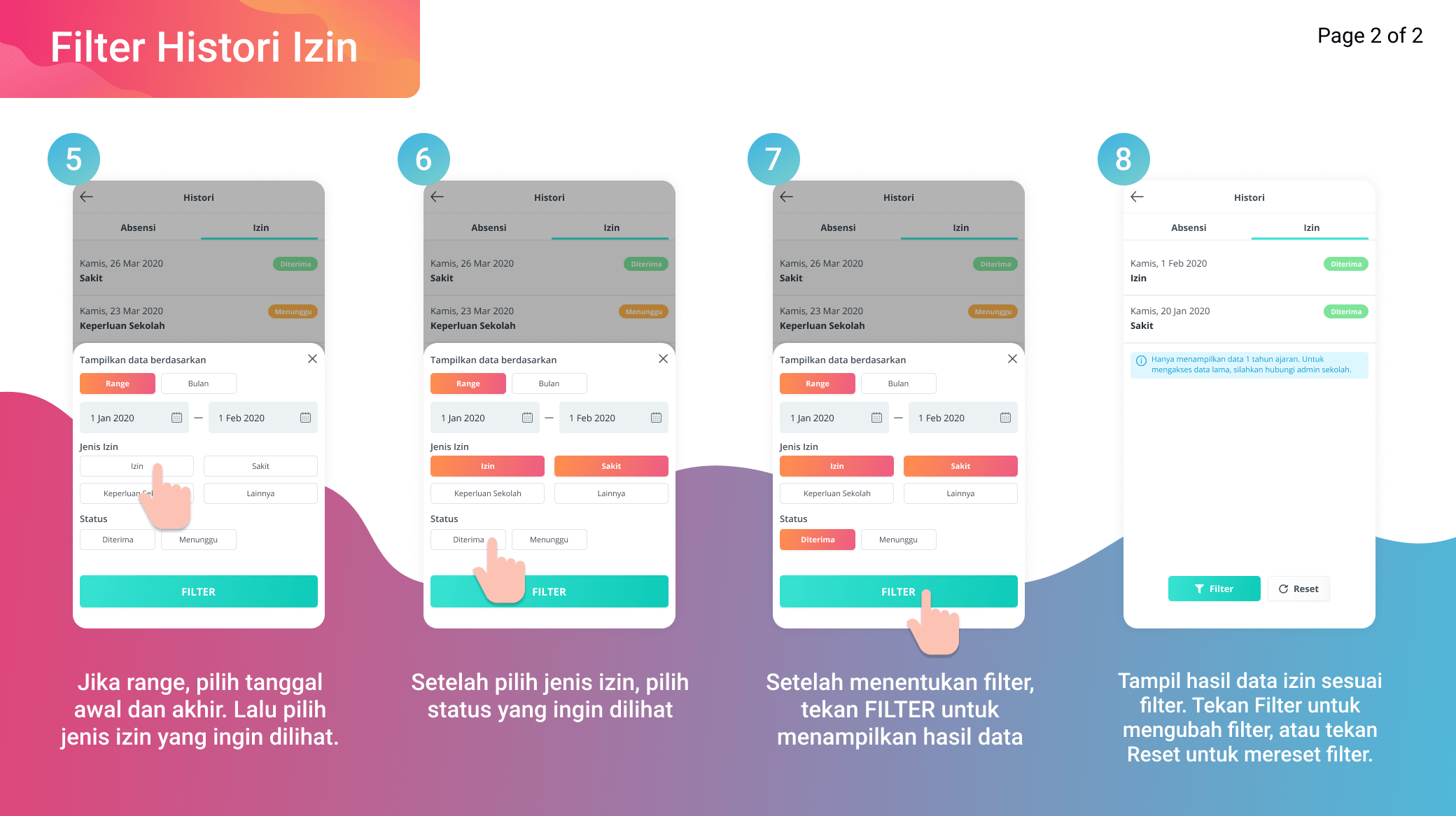 Tampil hasil data izin sesuai filter. Tekan Filter untuk mengubah filter, atau tekan