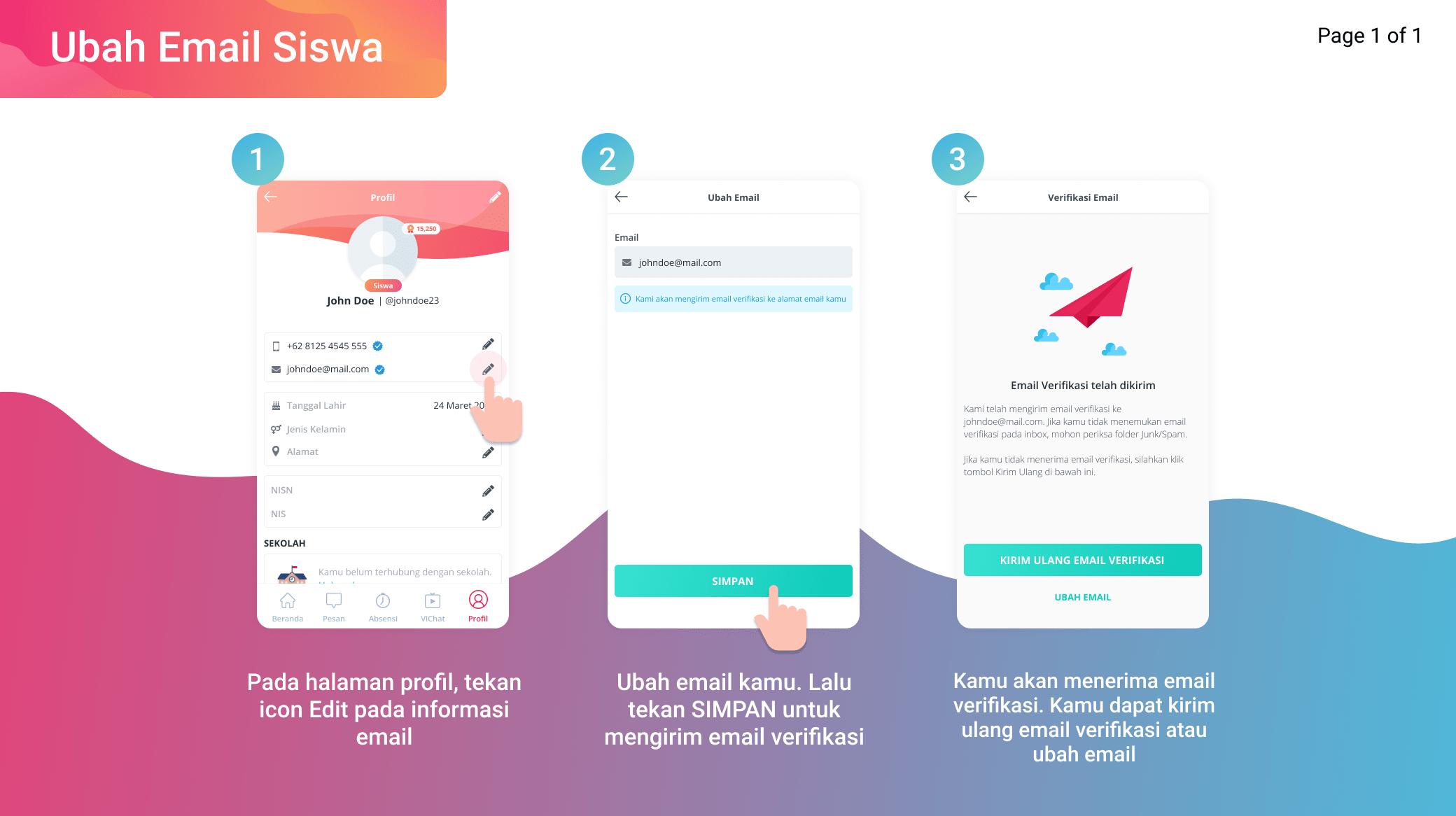 Masuk ke menu Profil. Pada halaman profil, tekan icon Edit pada informasi email.