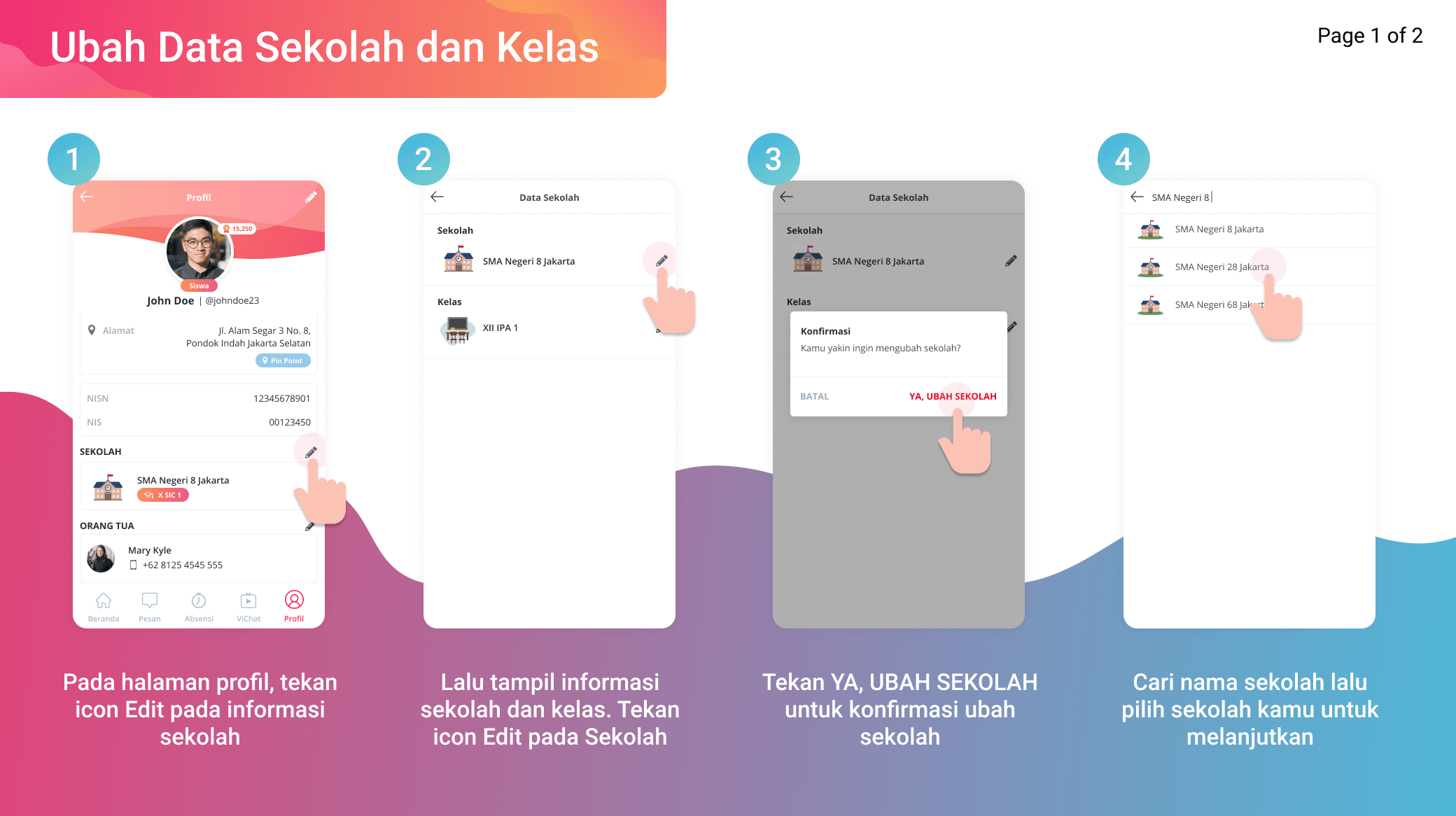 Berikut merupakan tahapan untuk ubah data sekolah dan kelas.